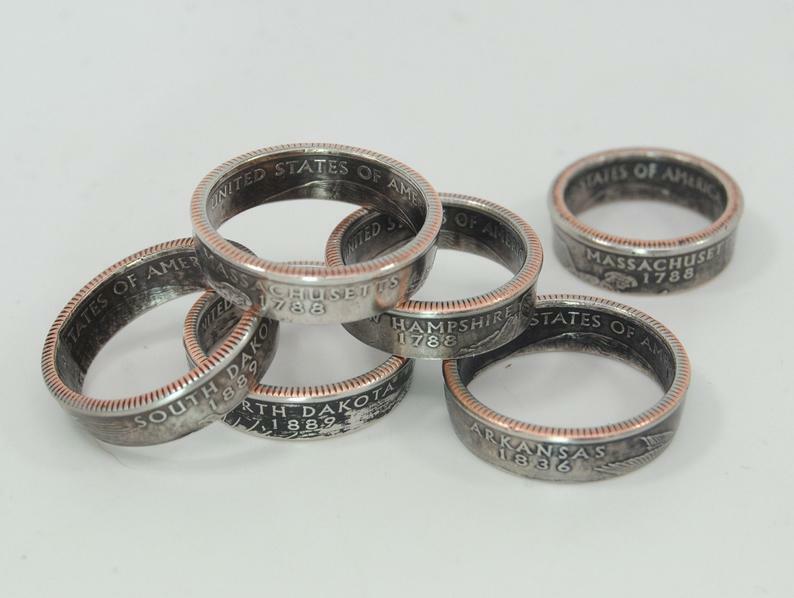 как выглядит Quarter Ring, US State Quarter Coin Ring, Choose State Size, Coin Jewelry фото