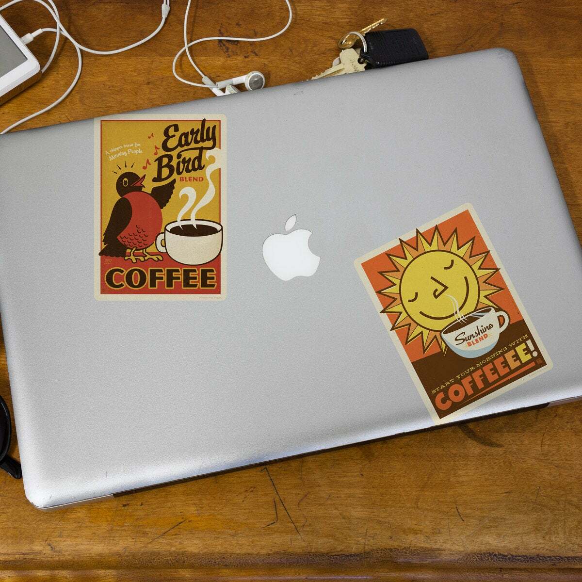 Early Bird Coffee Vinyl Sticker Set of 2 Laptop Car Decals