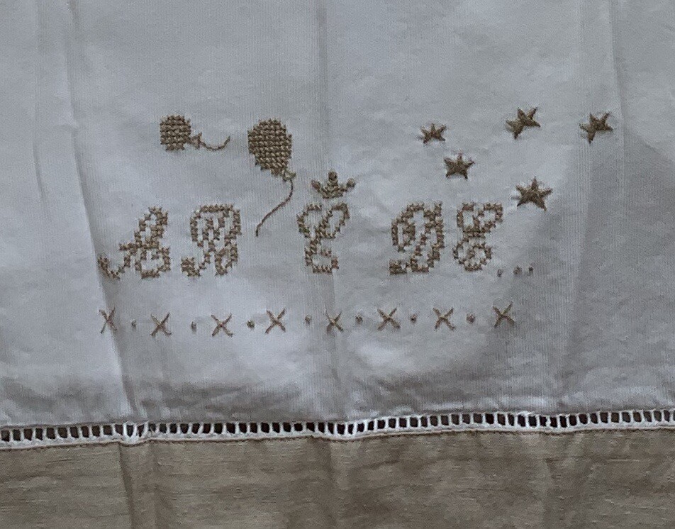 Jacadi Crib Sheet and Pillowcase Baby Beige and White
