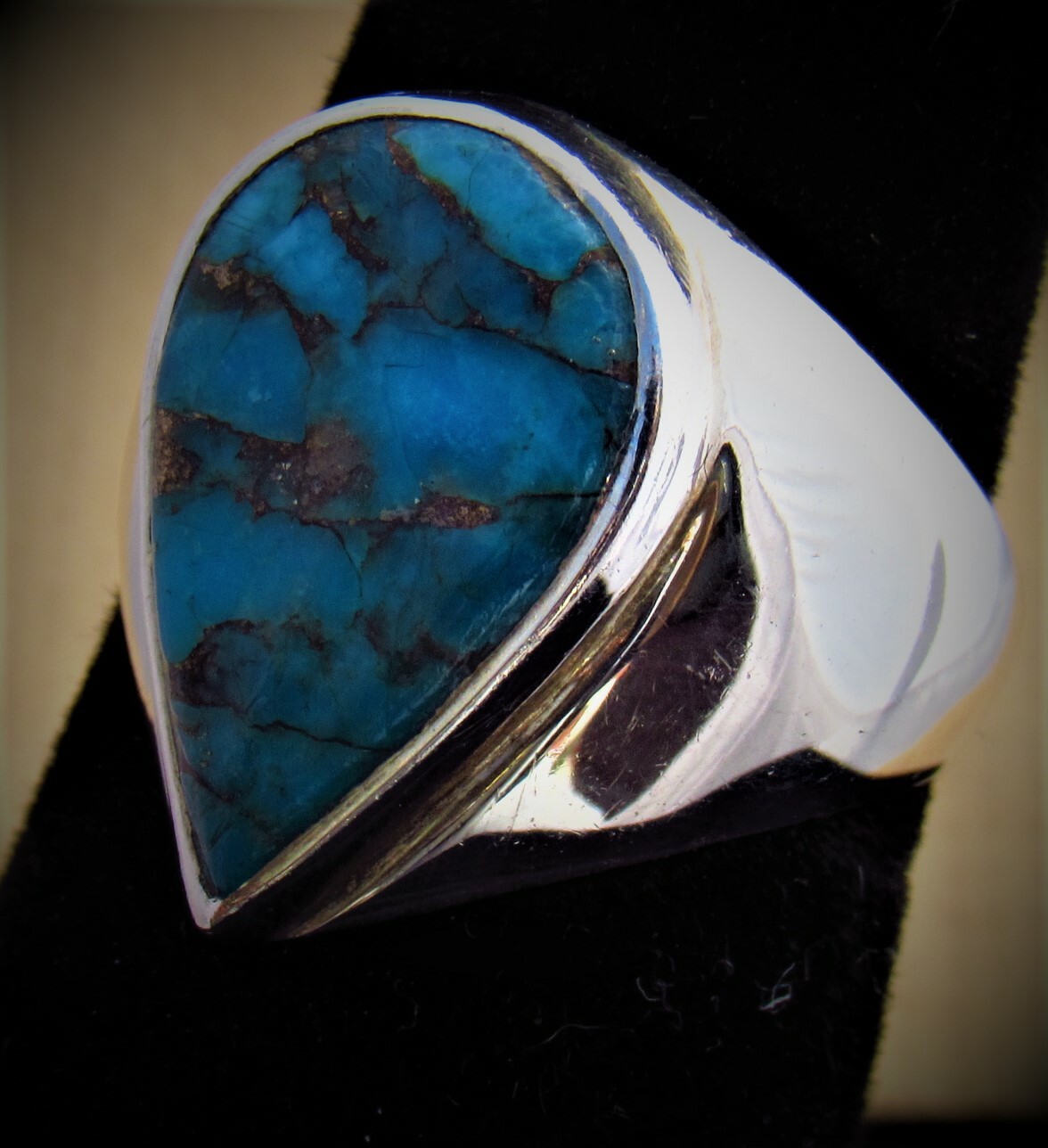 как выглядит Lovely Teardrop Mojave Turquoise Sterling Silver Cocktail Ring Size 7.25 Wt 8g фото