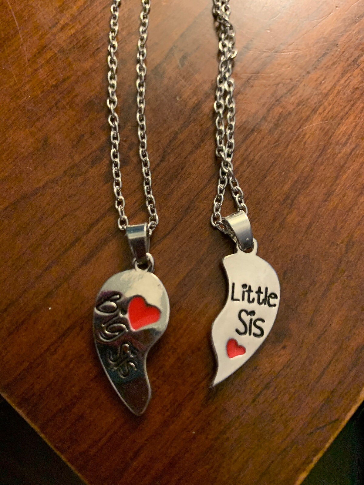 как выглядит 2pcs Big Sis Little Sis Necklace Set Sisters Heart Pendants - Brand New фото