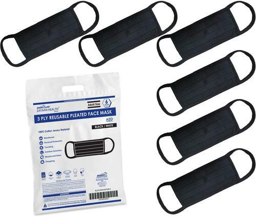 Adult Reusable Pleated Face Mask, Washable, Black Pack of 6