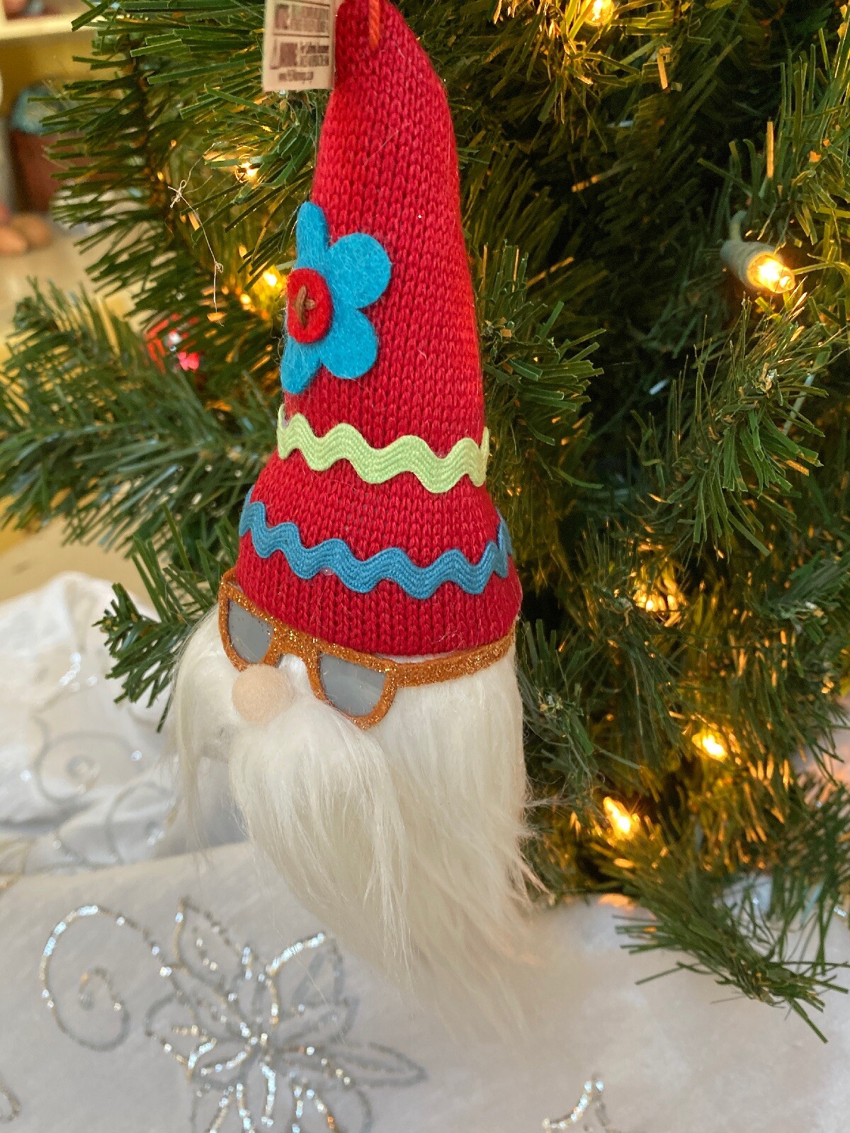 • New Kurt Adler 9" Cool Yule Fabric Gnome W/Sunglasses Christmas Ornament-DK Red