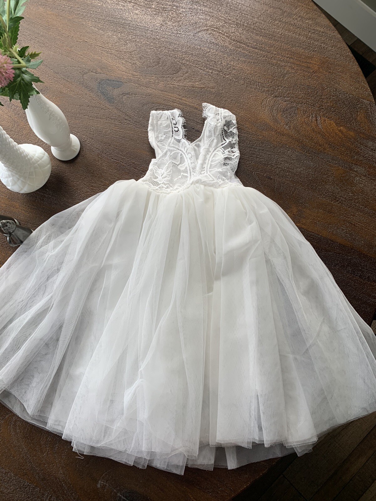 как выглядит Girl Rose Lace Back A-Line Tutu Tulle Party Flower Girl Dresses фото