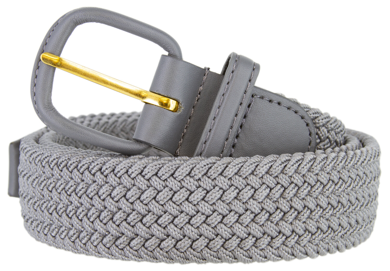 Leather Covered Fabric Braided Belt Elastic Woven Stretch Belt 1-1/4 32mm wide