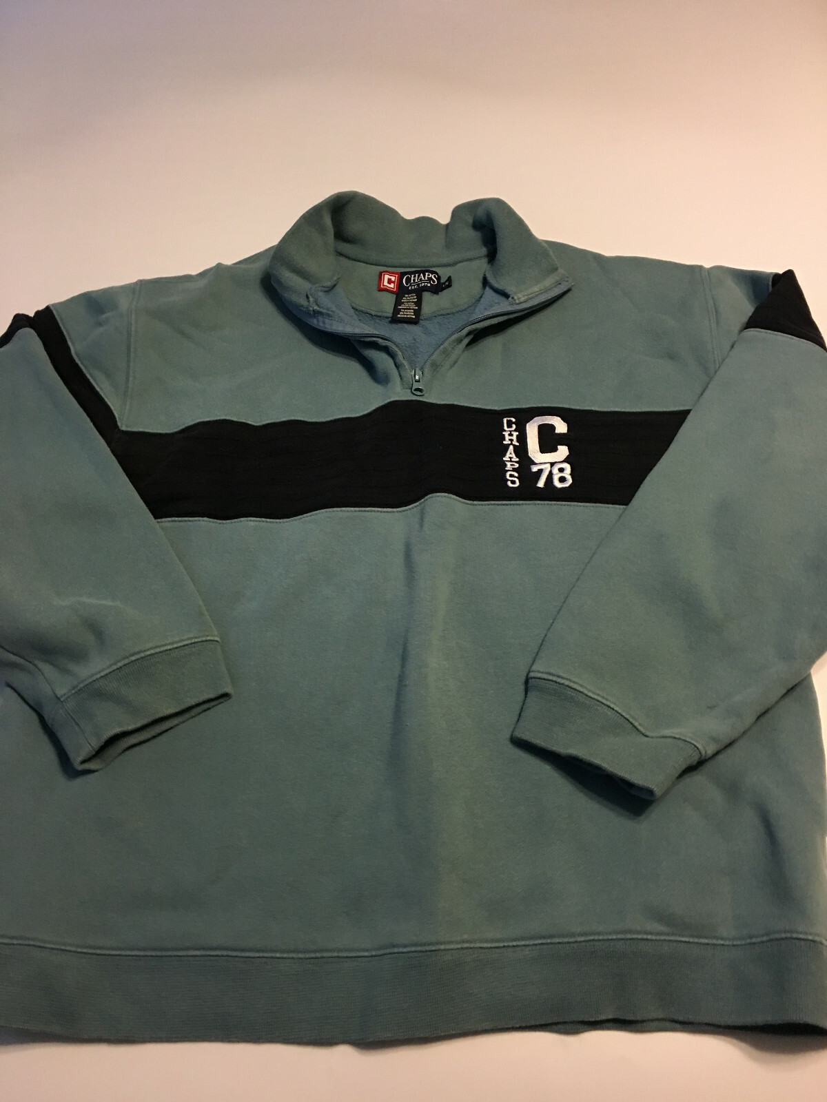 как выглядит Mens Vtg Blue Navy Chaps Spell Out Pullover 1/4 Zip Sweatshirt C 78 Size Large фото