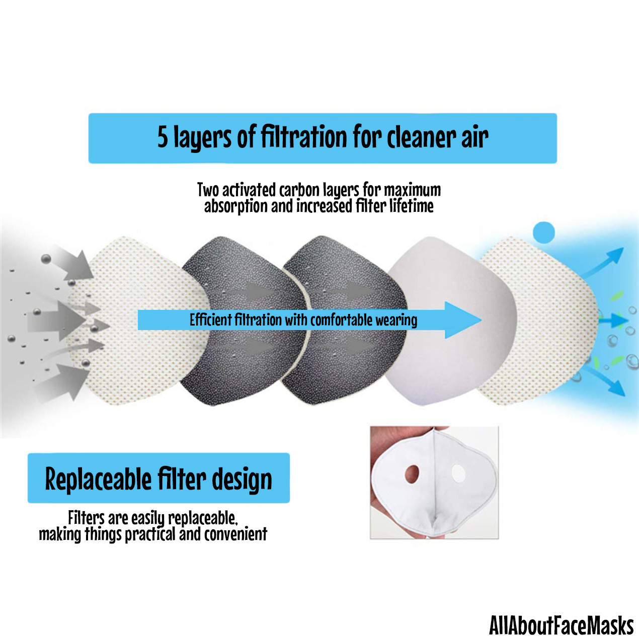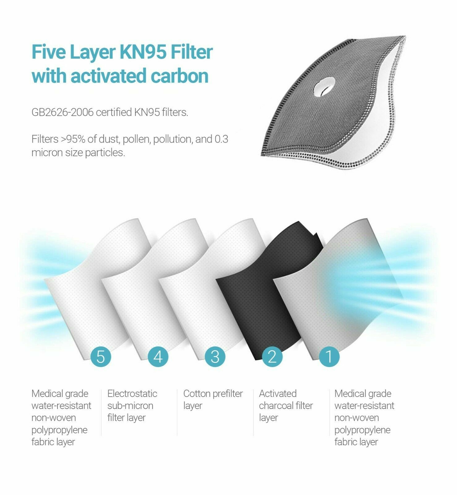 USA Activated Carbon Air Purifying Face Mask Cycling Reusable Filter Valve 95