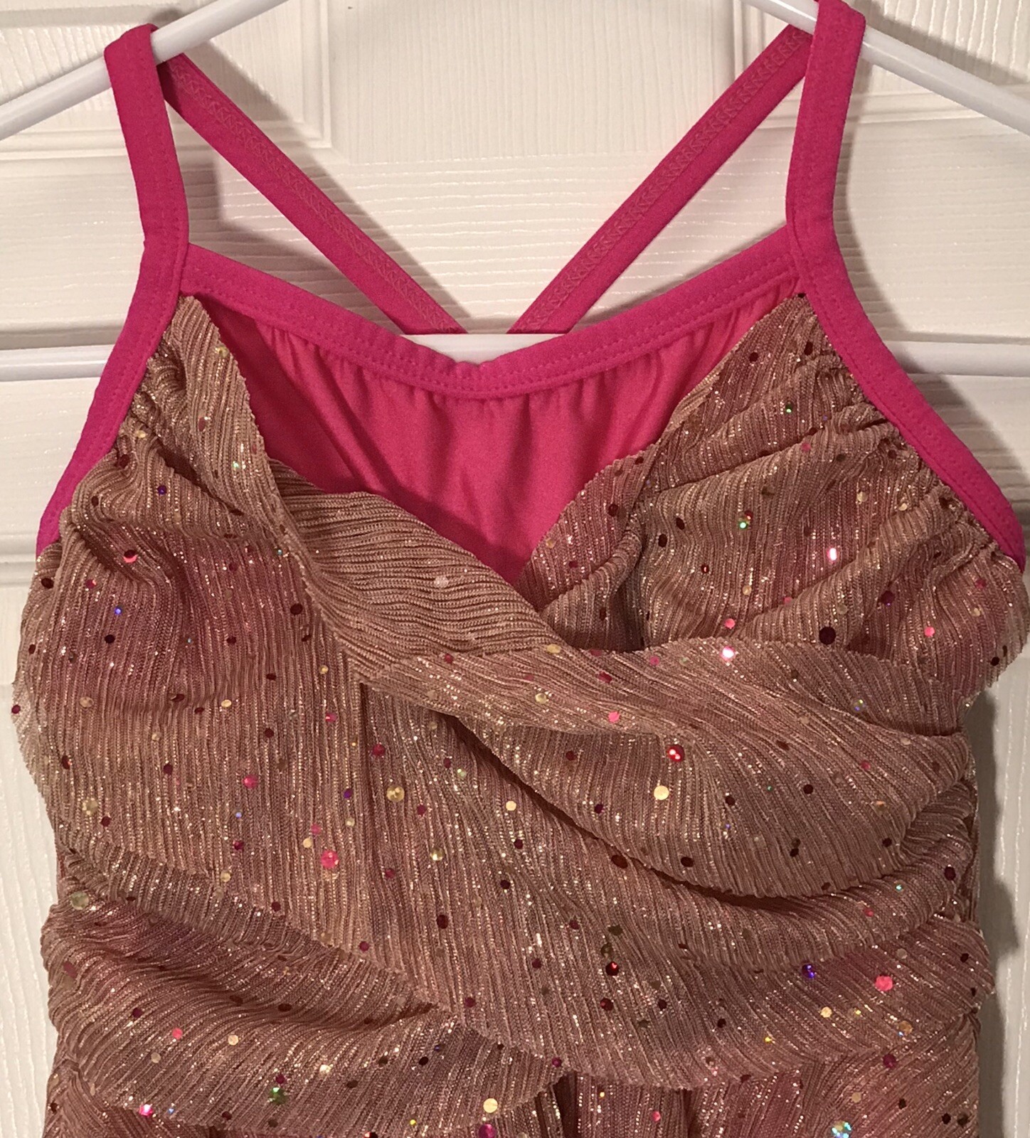 как выглядит A Wish Come True Pink Gold Dance Costume Lyrical Dress Size Large Child фото