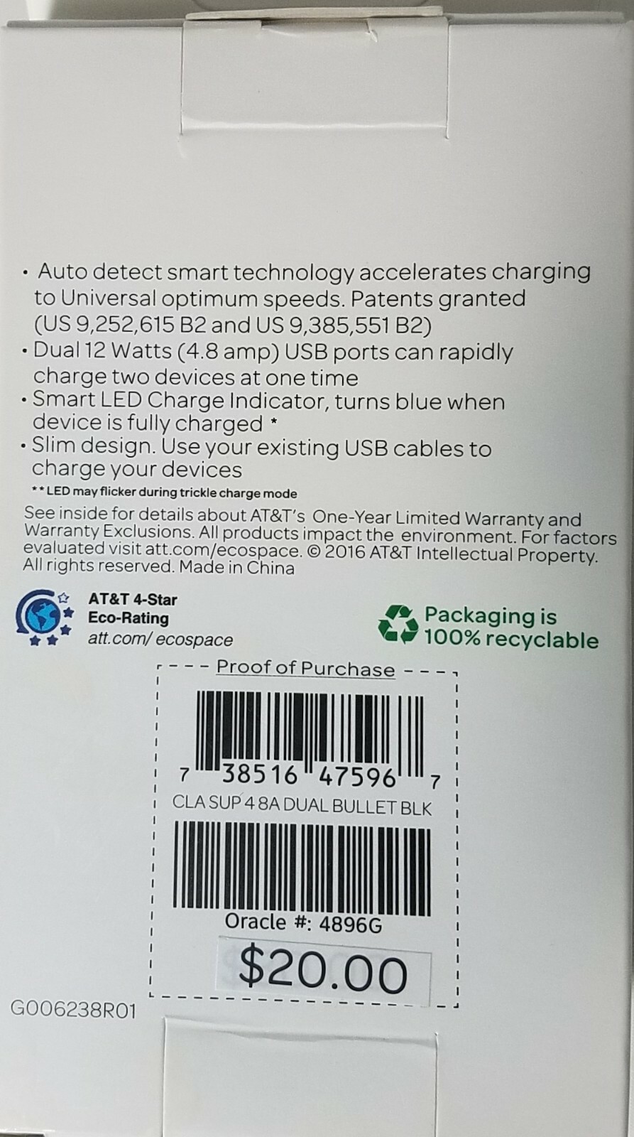 как выглядит AT T Dual Port USB Car Charger 4.8A w