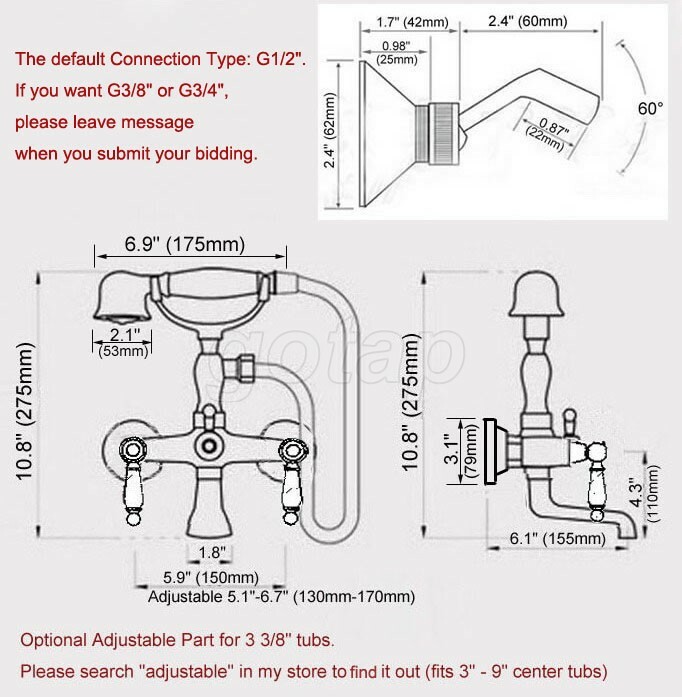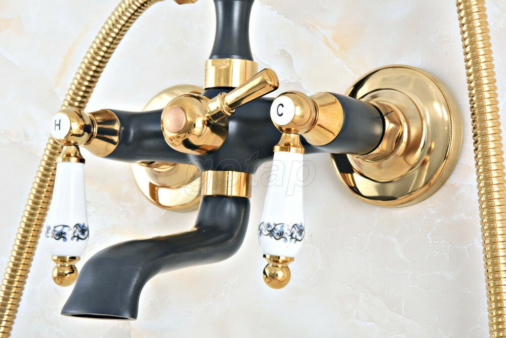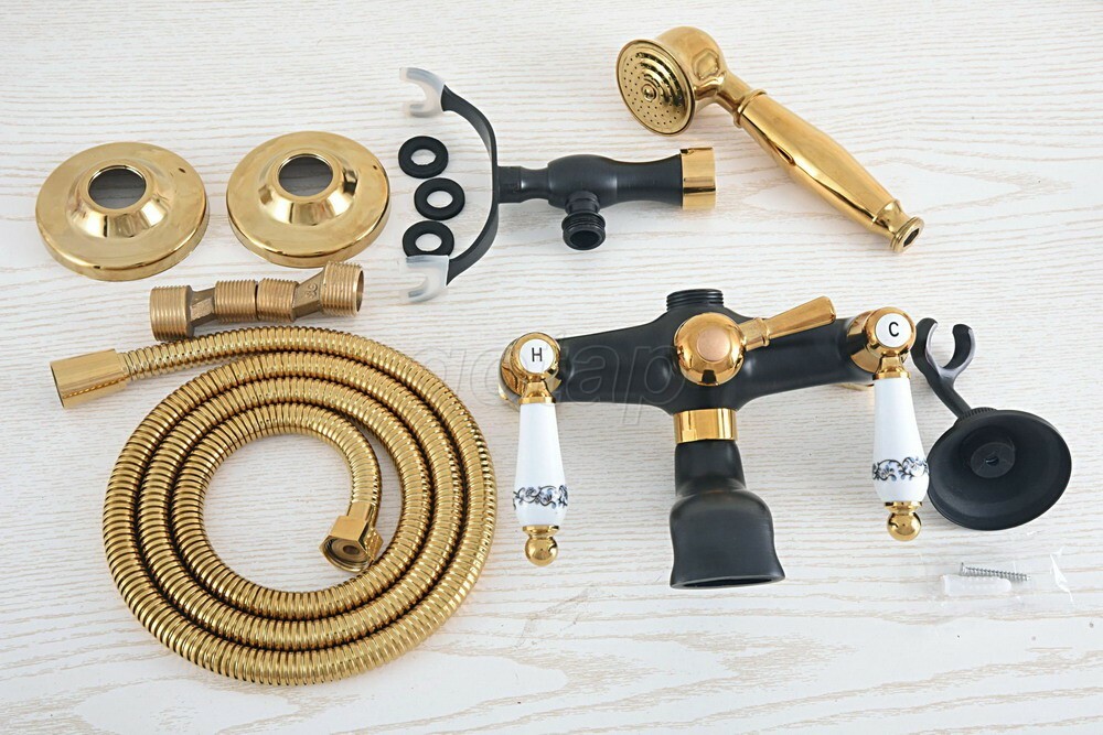 Gold Black Clawfoot Bath Tub Faucet w/ Hand Spray Shower Mixer Tap Wall Mount