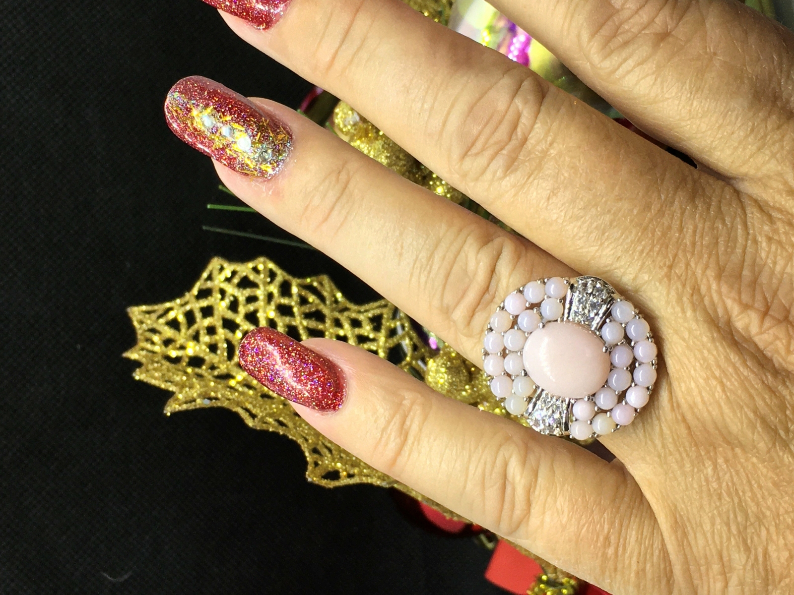 Peruvian Pink Opal Cocktail Ring-Beautiful and Classy