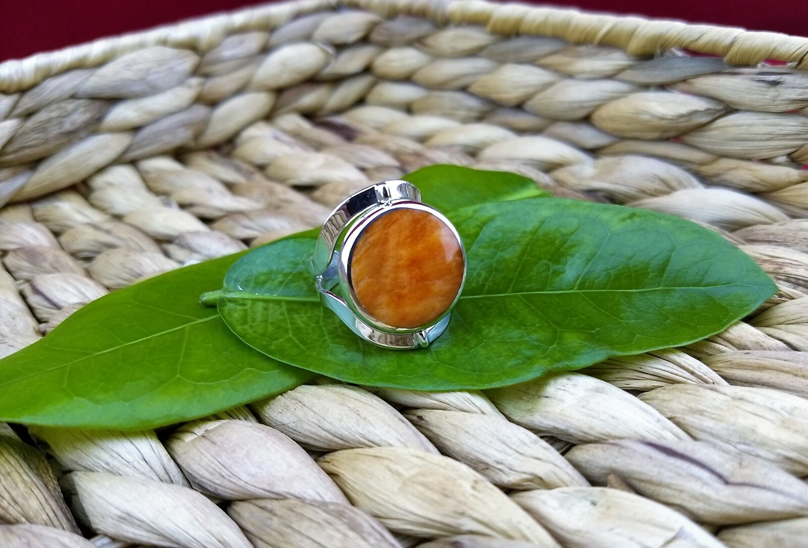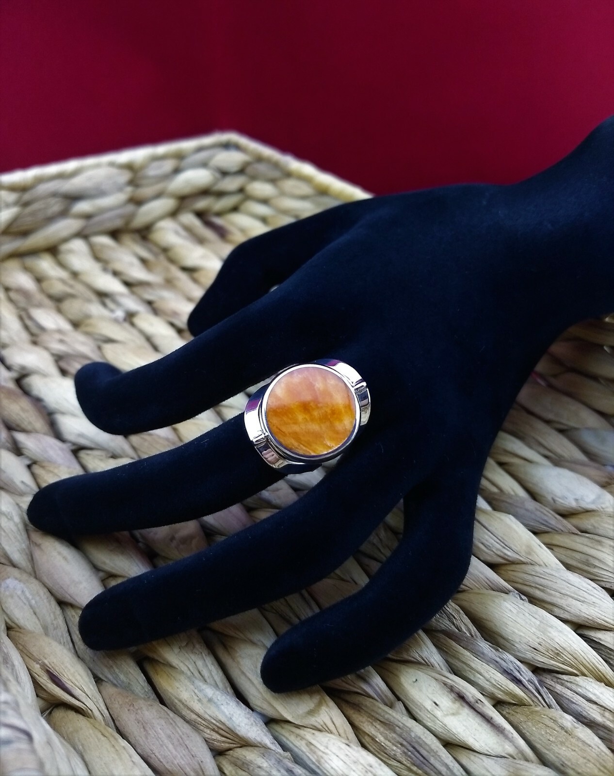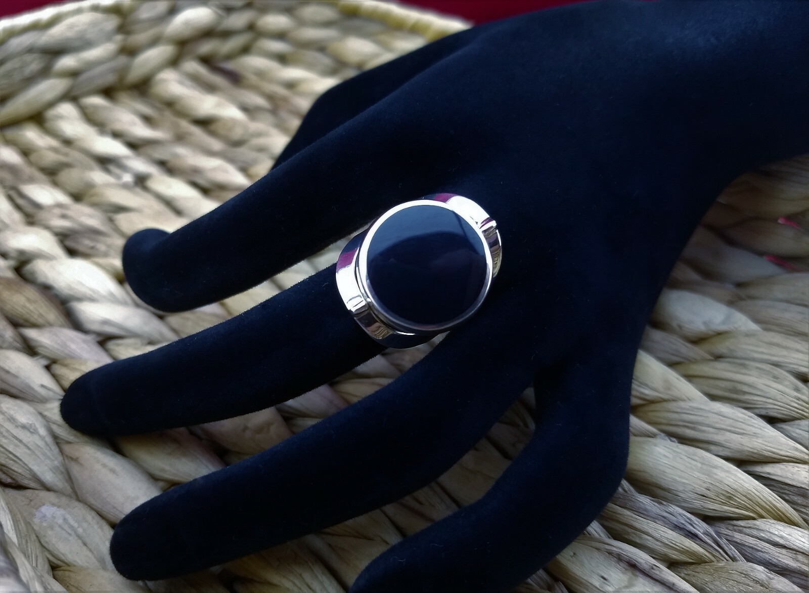 Handmade peruvian ring 950 silver double side Spondylus, Obsidian Size 8-8.5 Adj