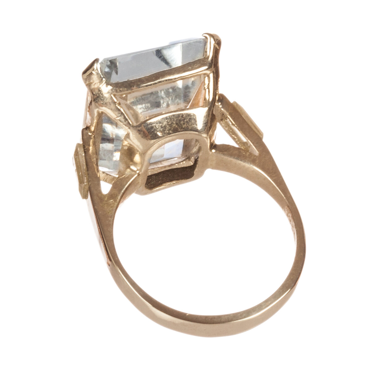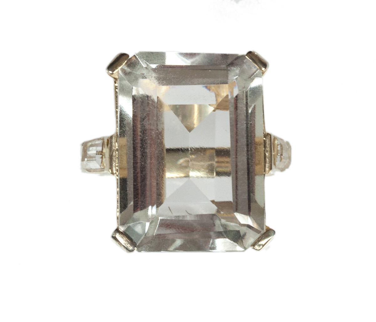 как выглядит Massive 14 kt Gold Vermeil Sterling Silver Emerald Cut Quartz Cocktail Ring фото