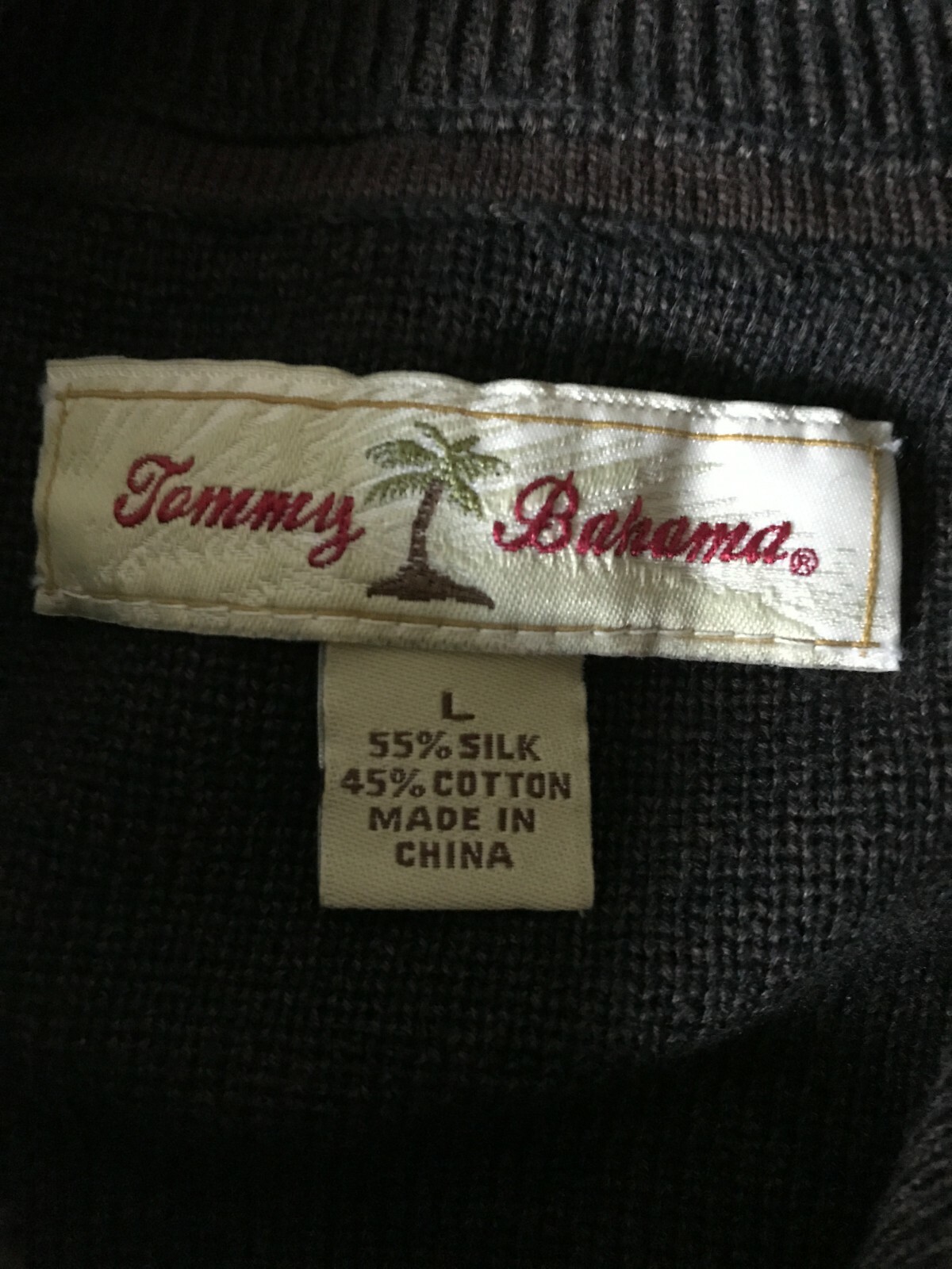 Tommy Bahama L Brown 1/4 Zip PALM TREE Logo On Zip Long Sleeve Sweater