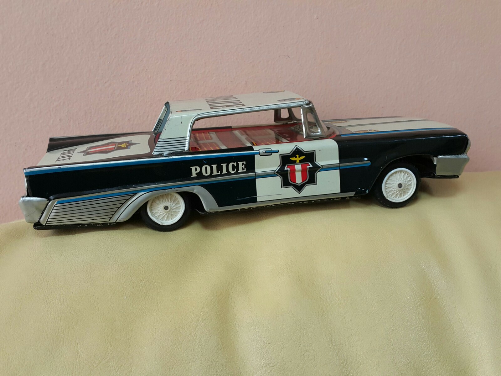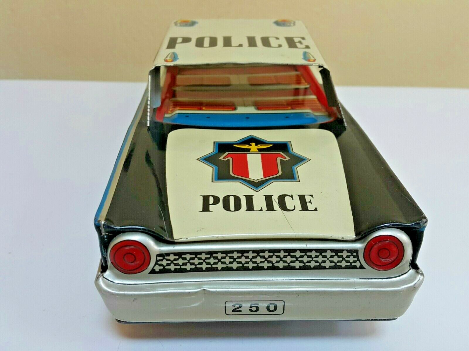 VINTAGE POLICE TIN TOY CAR 250 HIGHWAY PATROL FRICTION POWERED METAL RUBBER WORK