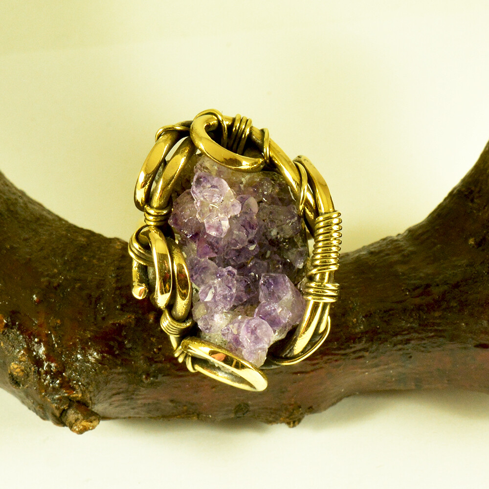 как выглядит Amethyst Crystal Point Size 9 Unique Ring Brass Wire Wrapped Artisan Jewelry фото