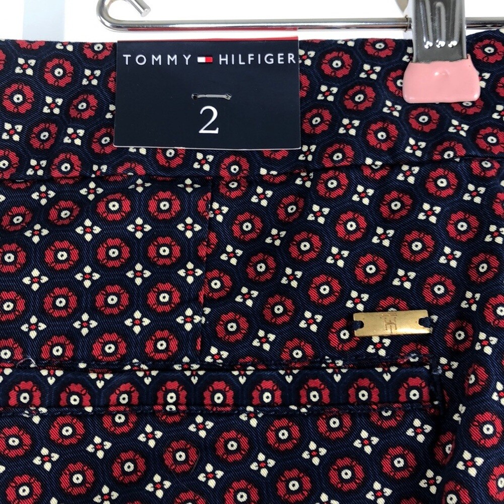 Tommy Hilfiger Navy Red Print Skinny Leg Pants sz 2