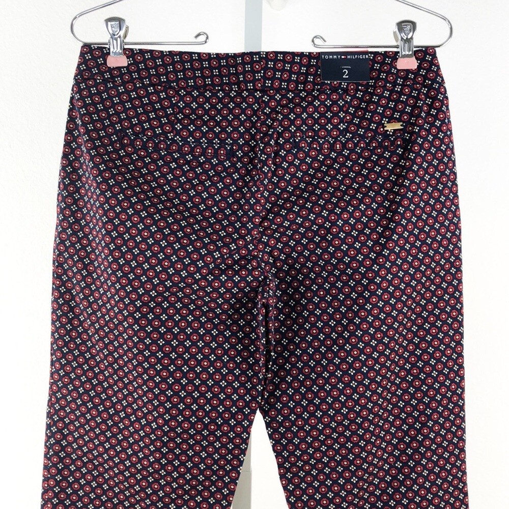 как выглядит Tommy Hilfiger Navy Red Print Skinny Leg Pants sz 2 фото