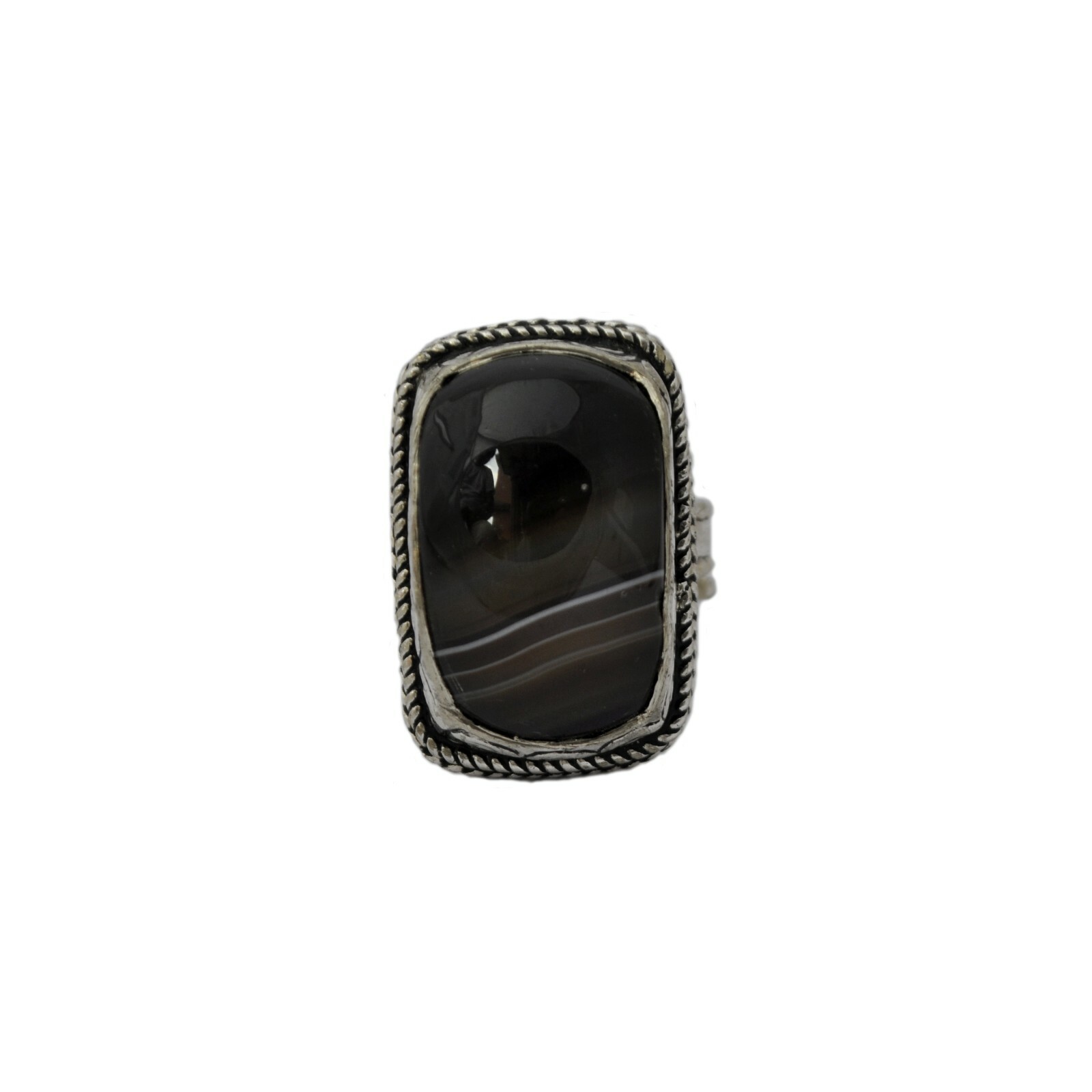 Black Agate Silver Plated Ring Adjustable 9-11 Ethnic Nepalese Handmade RG177
