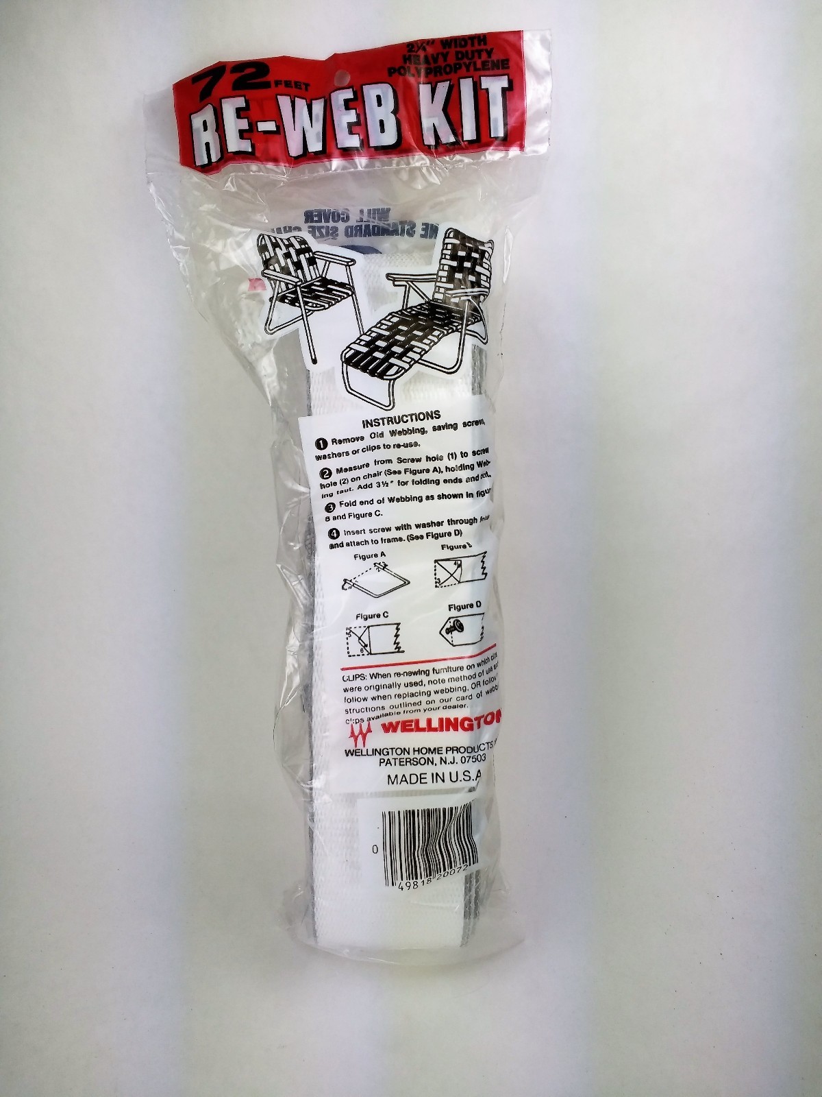 Wellington Lawn chair webbing 72ft new in package WHITE gray edge 2 1/4in