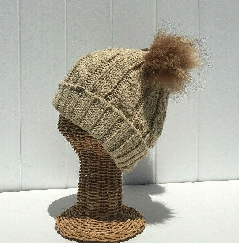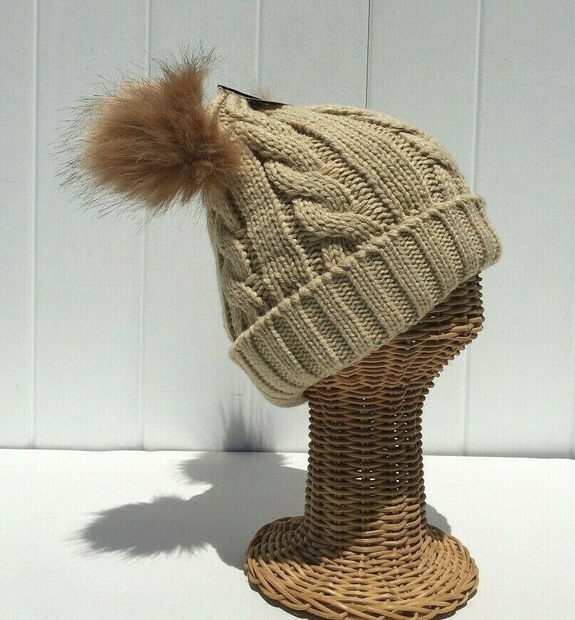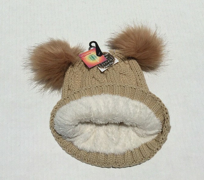 как выглядит Winter Warm Knitted Soft Faux Fur Double Pom Beanie Hat w/ Plush Lining Beige C фото