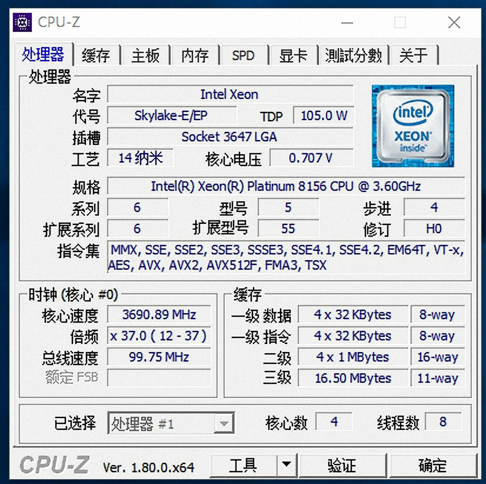 Processor Model: Intel Xeon Platinum 8156 SR3AV
