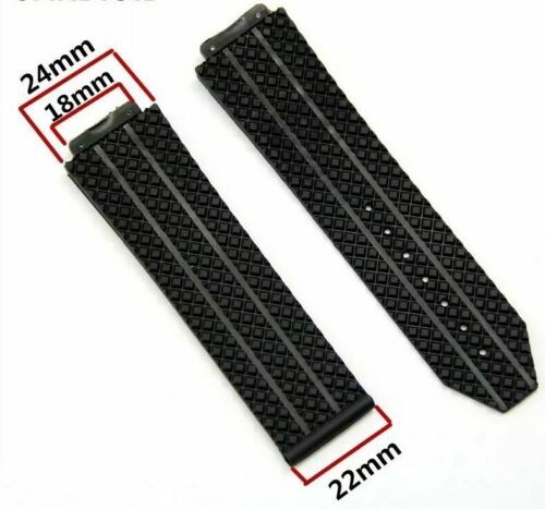 24mm Silicone Rubber Watch Strap Band Fits For Hublot Big Bang Tires Style Black