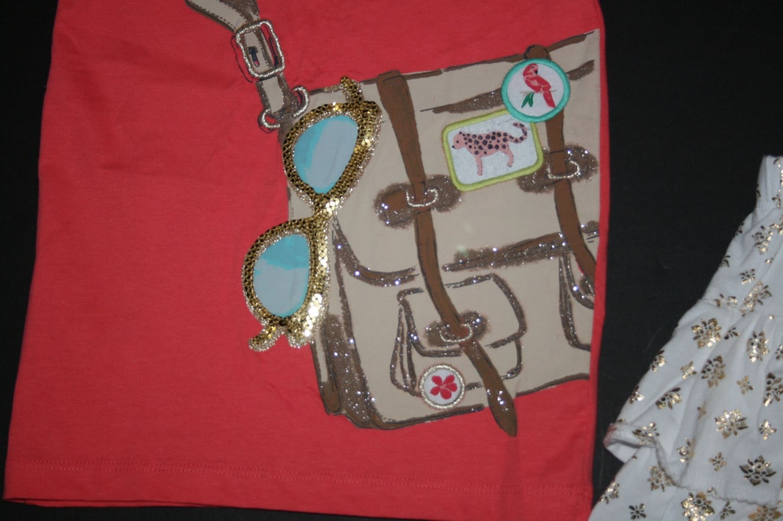 как выглядит New Gymboree Girls 5 year 2 Piece Set Outfit Coral Top Gold Foil Print Skort фото