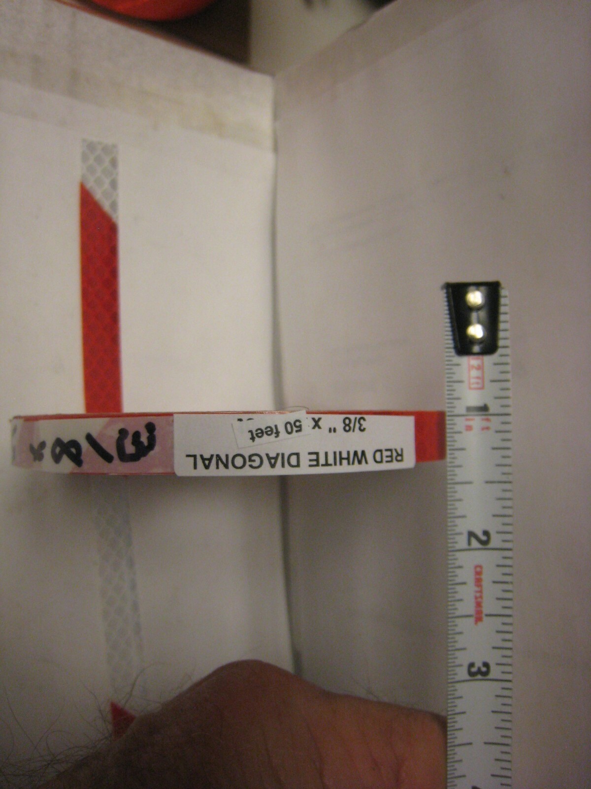 как выглядит 3M BRZ983L WHITE RED / SILVER Reflective Diagonal Stripe Tape 3/8" x 50