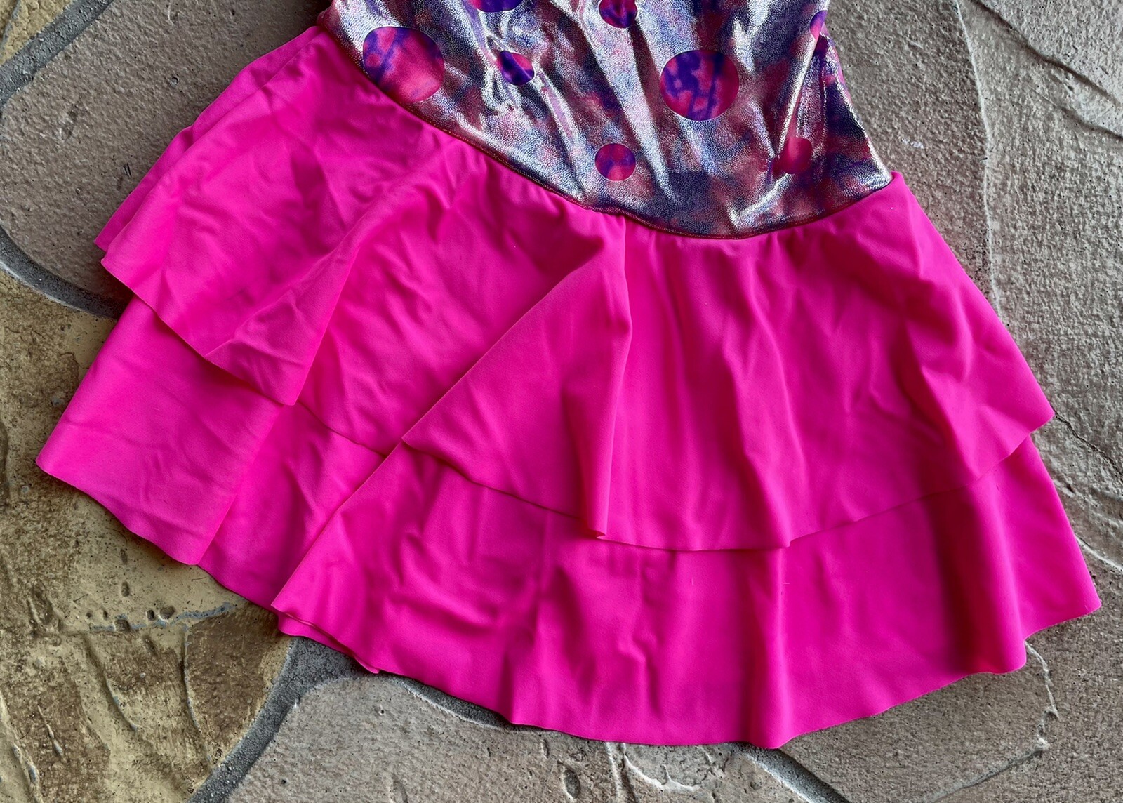 Jazz Tap Dance Costume Hot Pink Child Small/CS Leotard Skirt Halloween Star Foil