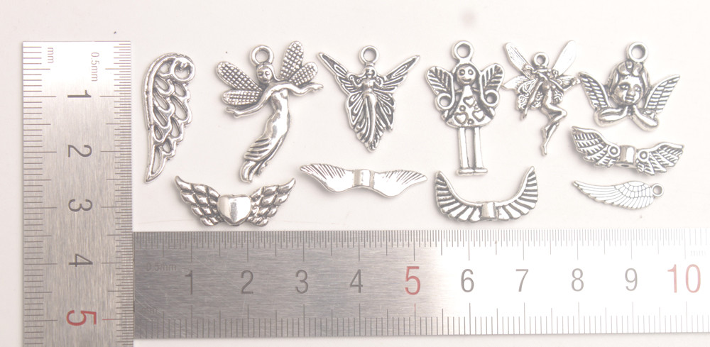 как выглядит Mix Lots 11 66PCS Antiqued Silver Metal Fairy Charms Angel Wing Spacer Beads фото