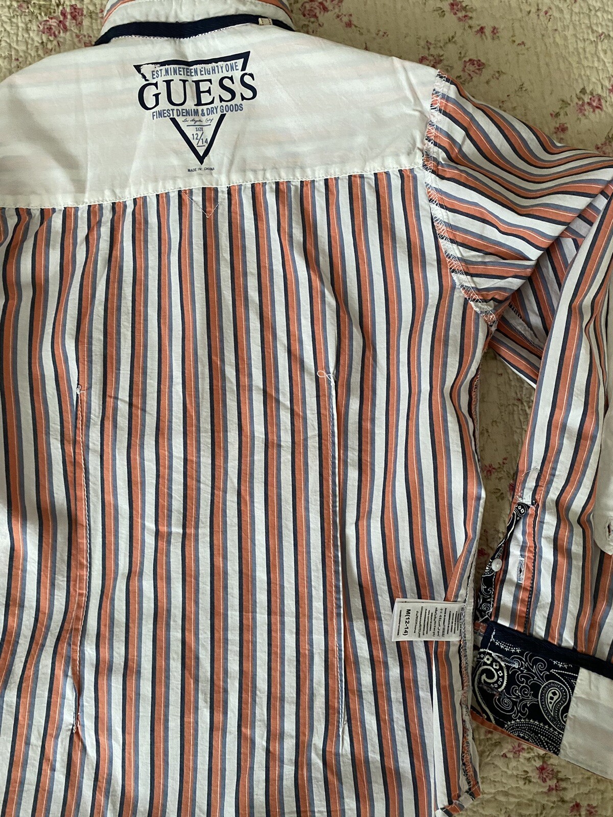 Guess Boys Western Button Up Roll Tab Long Sleeves Cotton Shirt Size M 12/14