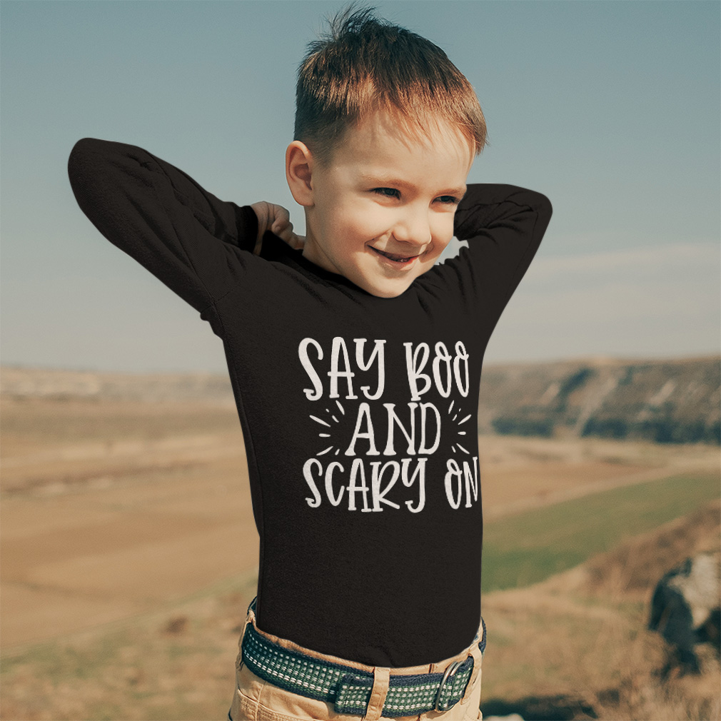 Kids Long Sleeve T Shirt Halloween Say Boo and Scary on Girls Boys Clothes
