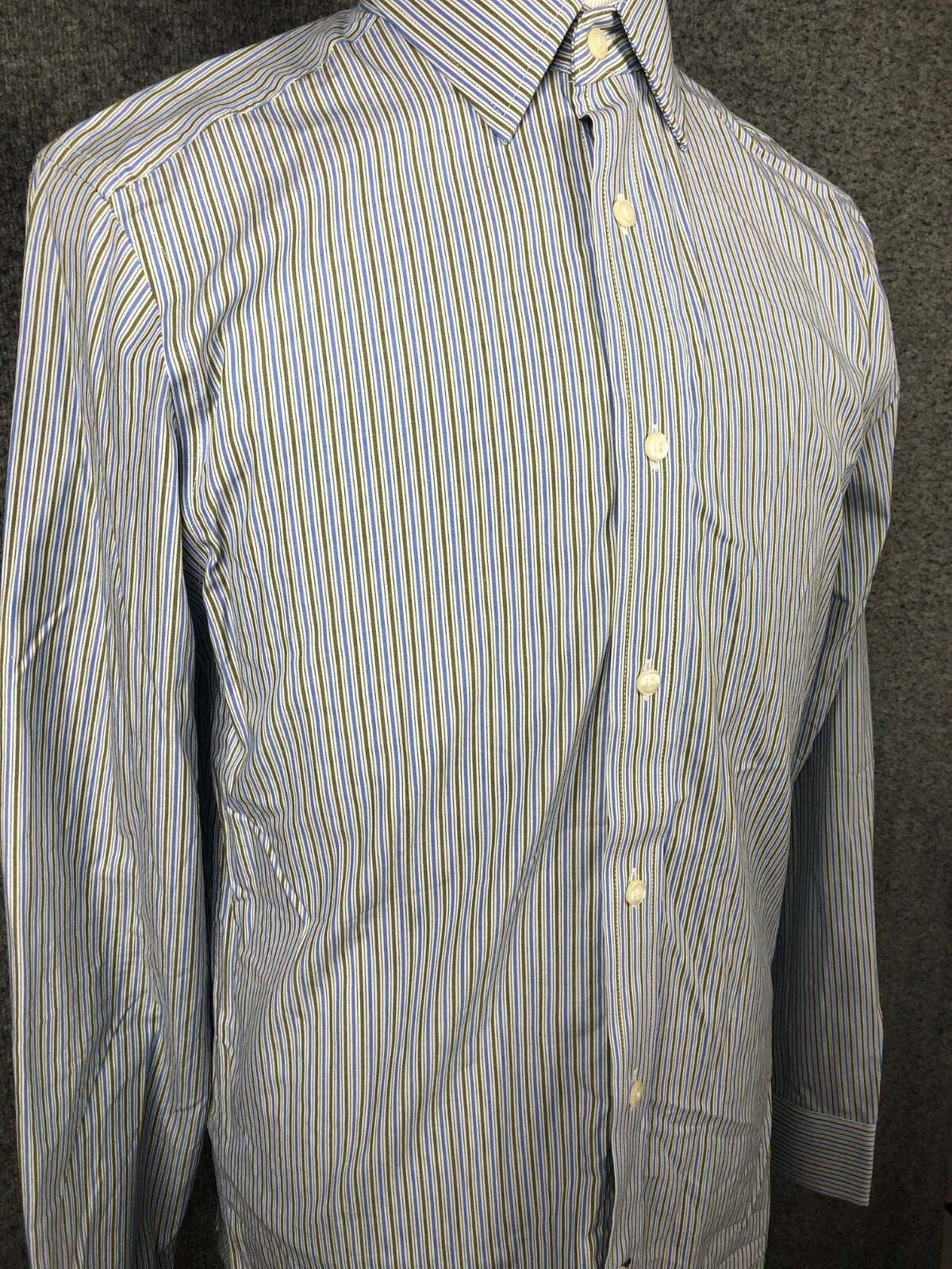 как выглядит GAP Premium Slim Fit Mens Short Sleeve Button Front Striped Dress Shirt M NWT фото