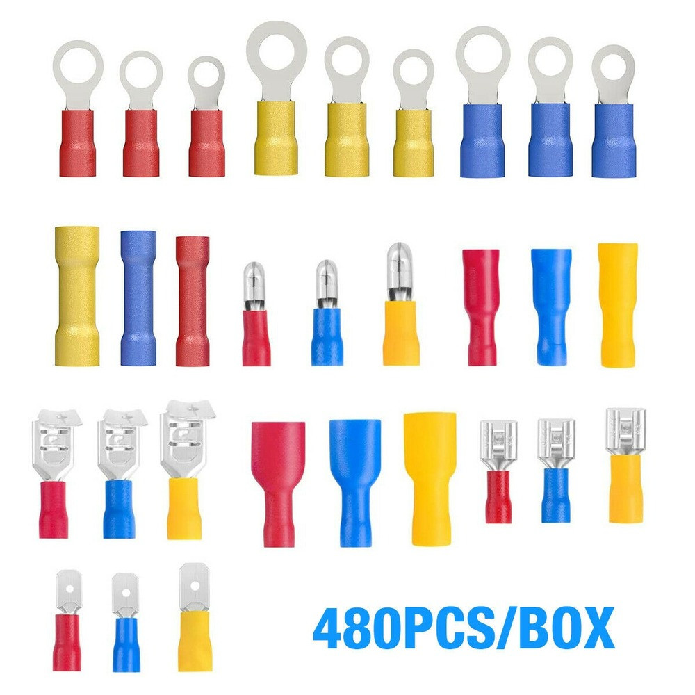 480pcs Assorted Insulated Electrical Wire Terminals Crimp Connectors Spade Kit