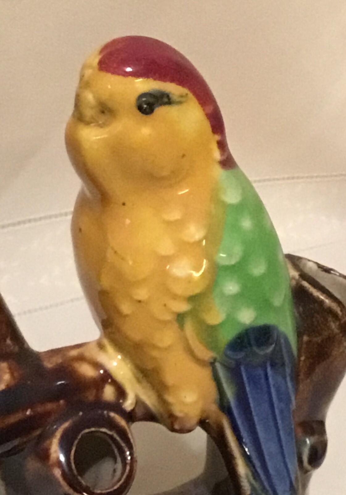 VINTAGE COLORFUL TROPICAL BIRD FIGURAL 3 HOLE FLOWER FROG MADE IN JAPAN