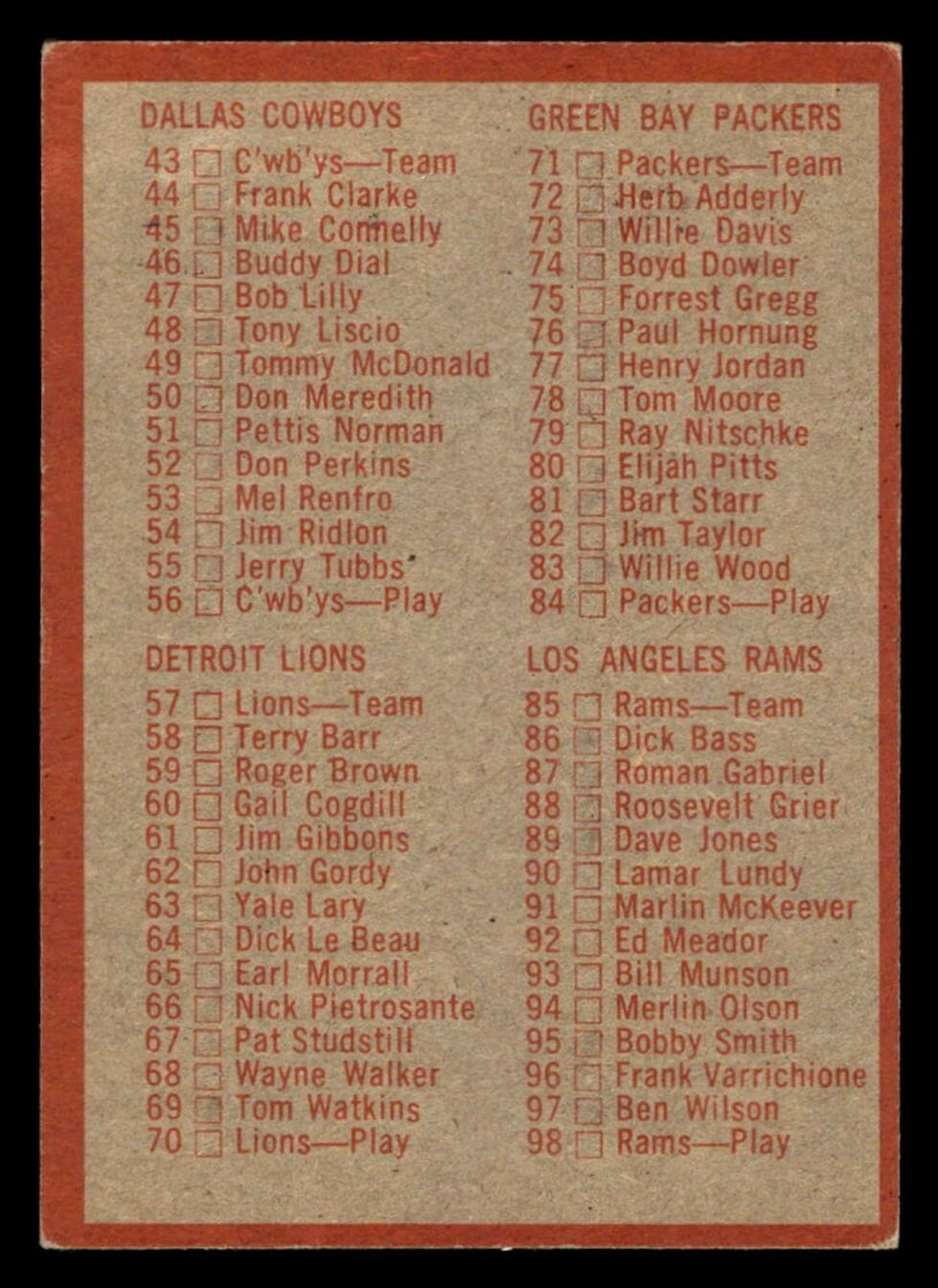как выглядит 1965 Philadelphia Football 197 Checklist 1 VG d3 фото
