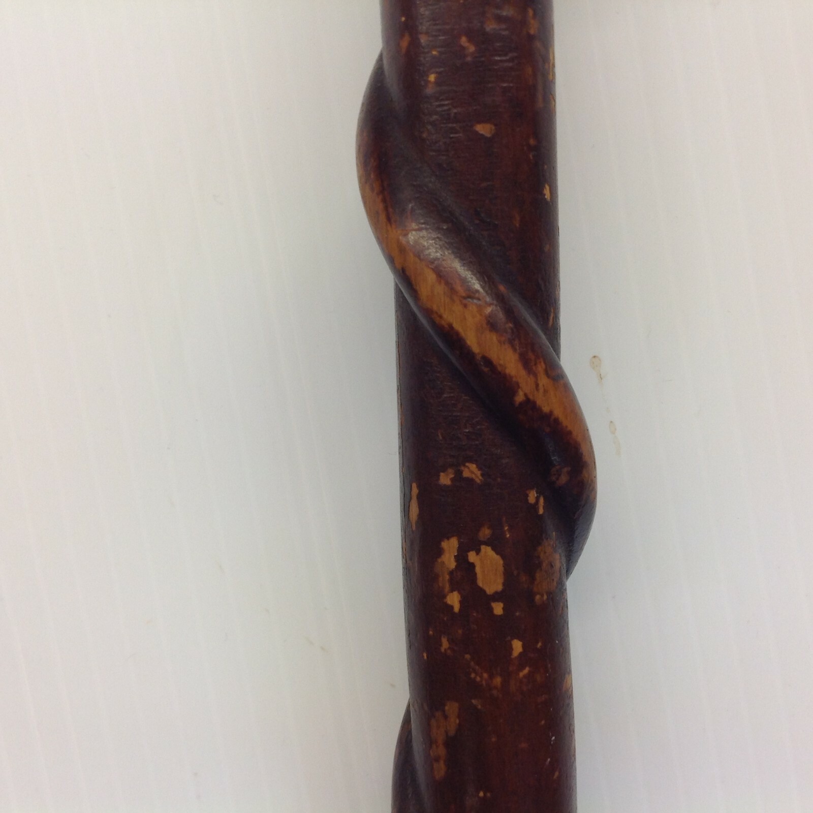 Antique Carved Wooden Folk Art Walking Cane Entwined Cobra Snake Sgt. McNeill