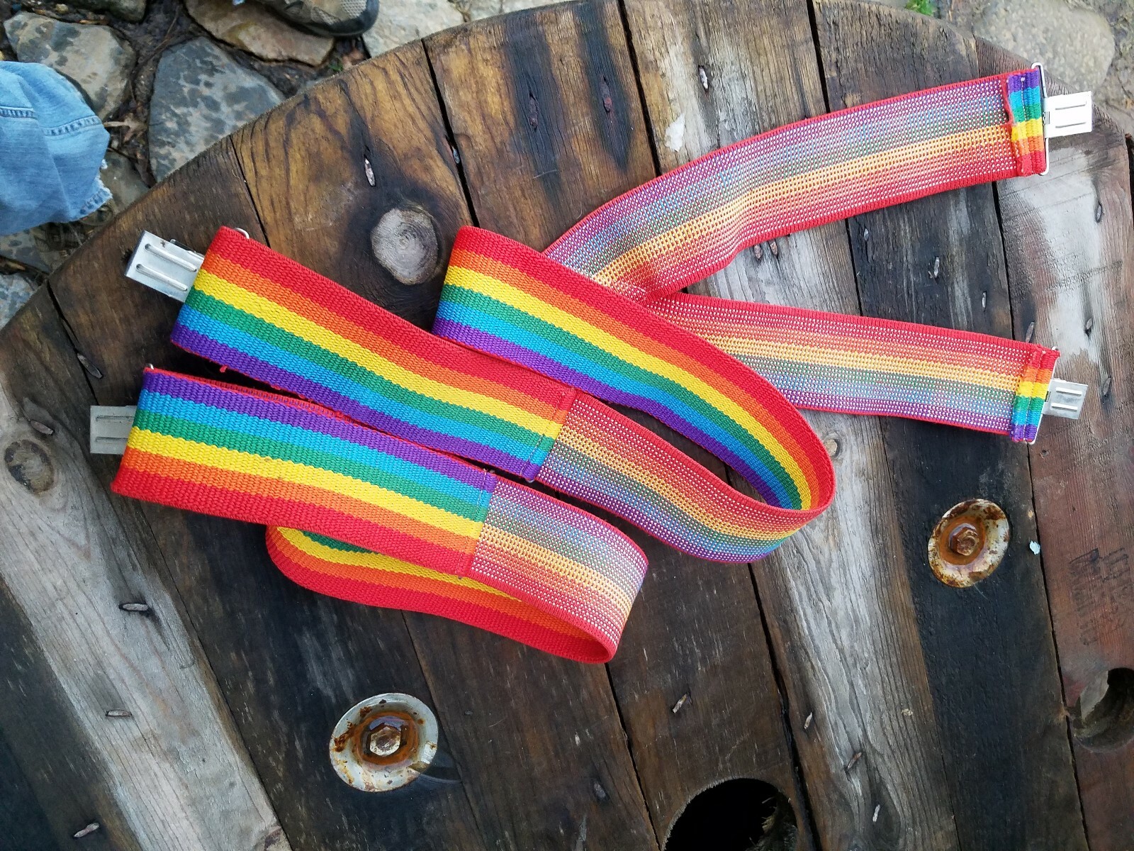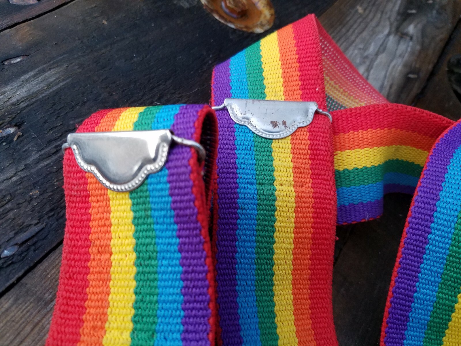 Vintage Rainbow Striped Suspenders 2 Wide Strap Retro
