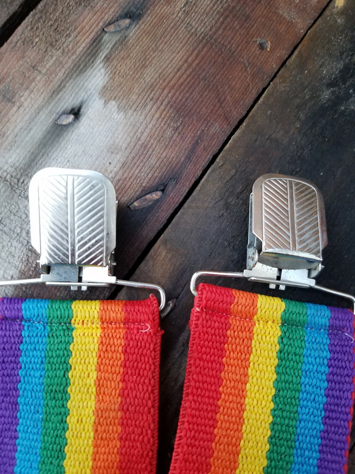 как выглядит Vintage Rainbow Striped Suspenders 2" Wide Strap Retro фото
