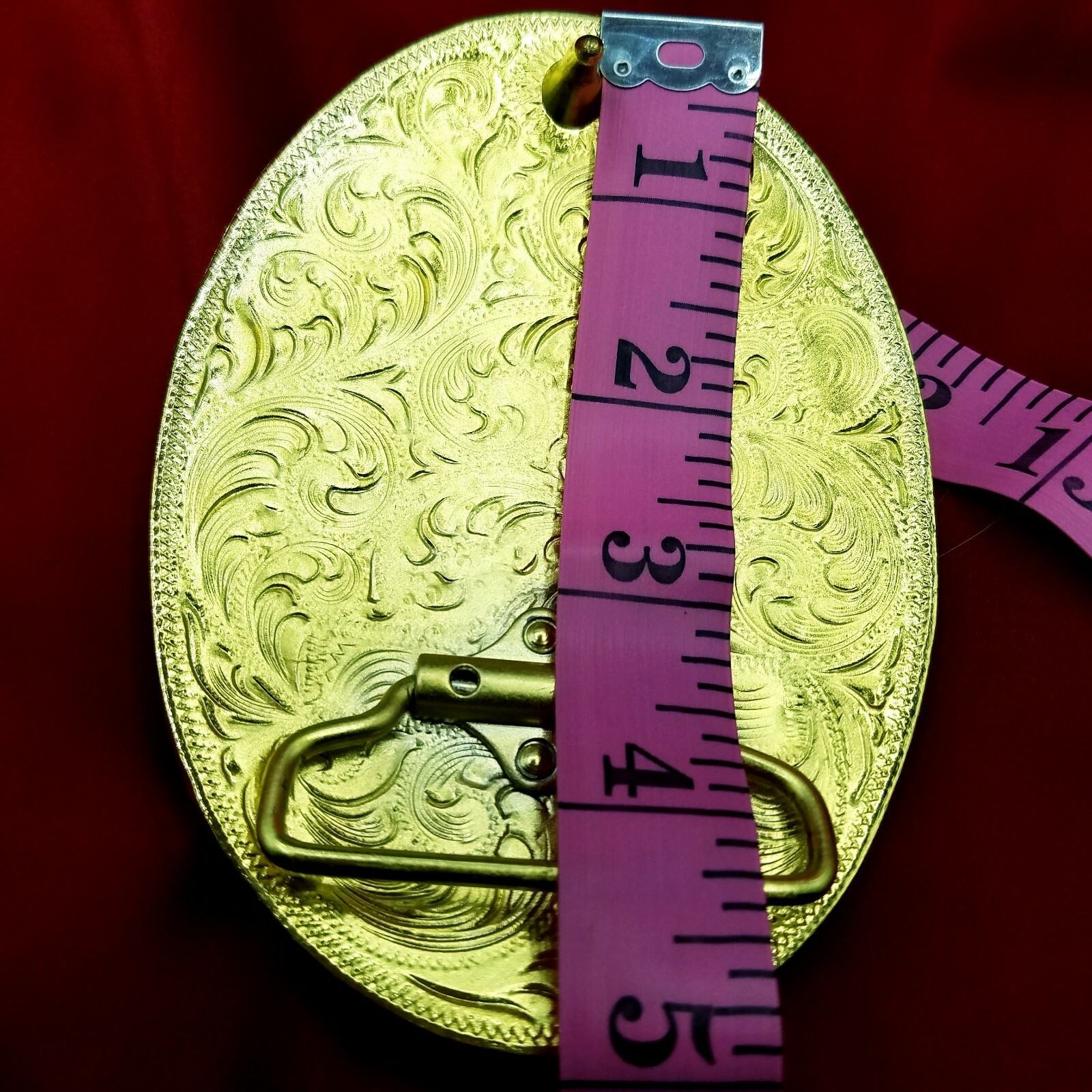 Western belt Buckle Bullrider Large Oval Red and Gold 5x 3.5 inches