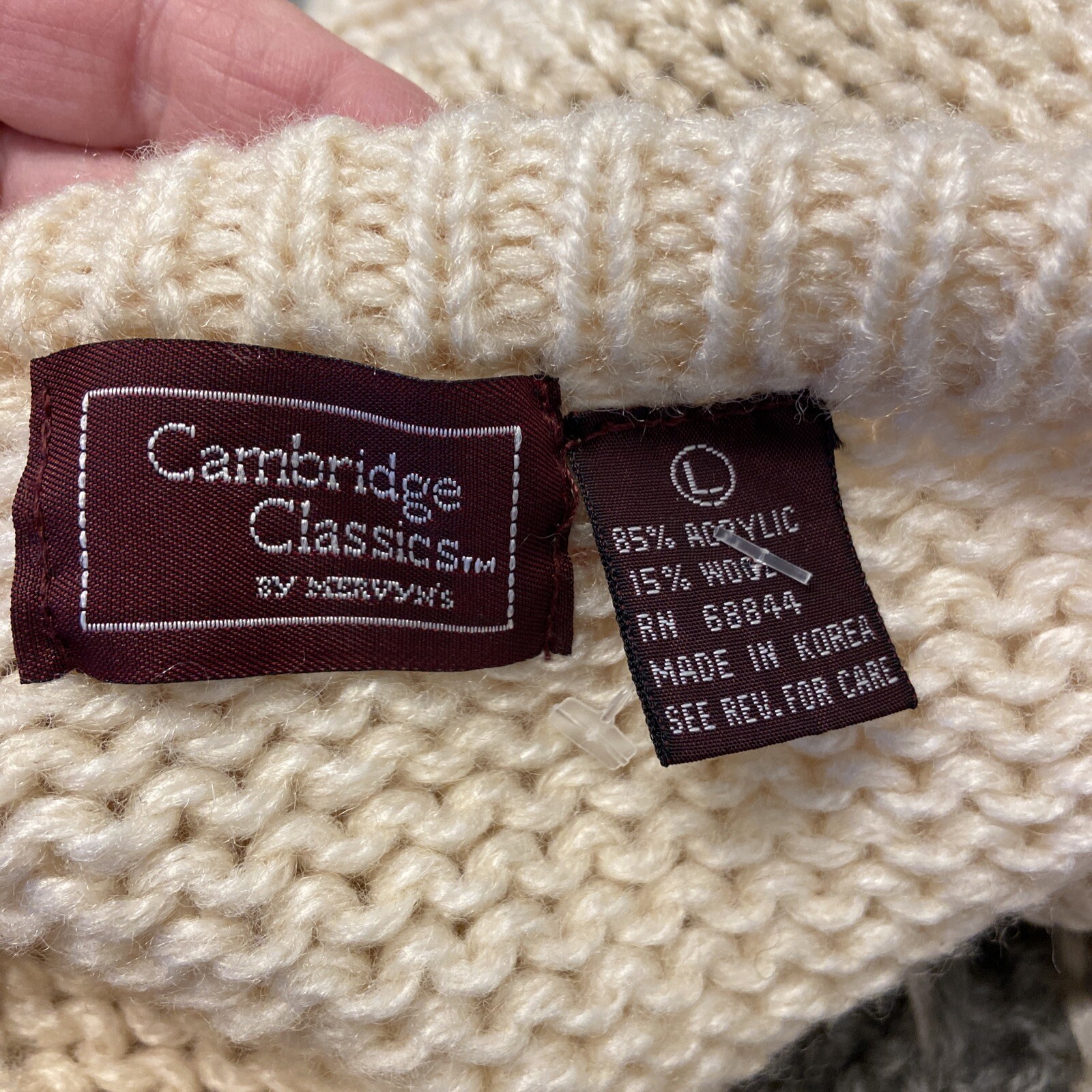как выглядит Vintage Mervyns Cambridge Classics Wool Blend Sweater Mens L Cream Gray Cable фото