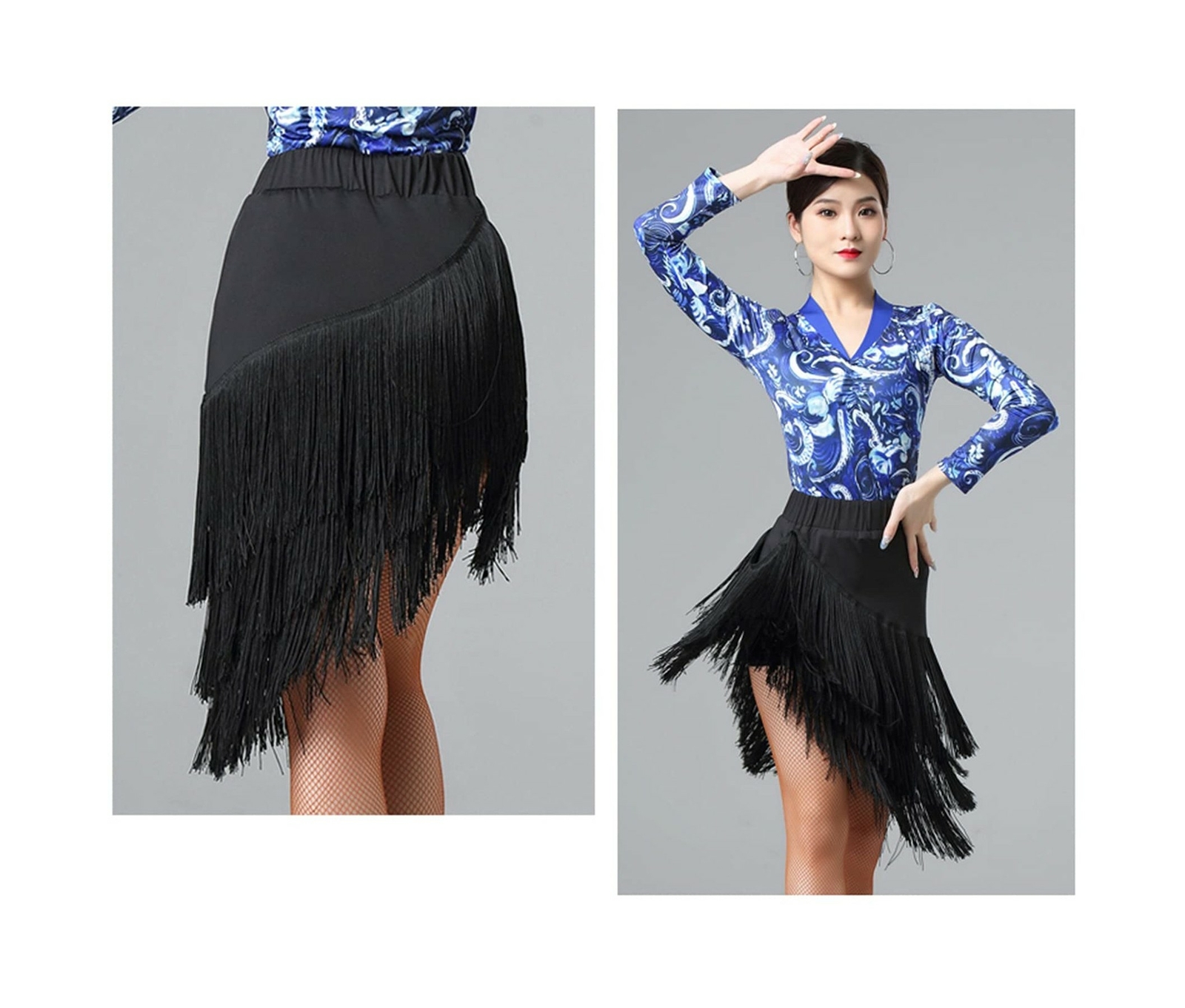 Z X Women's Ballroom Latin Tango Slasa Dance Skirt Fringe Split Leg Halloween...
