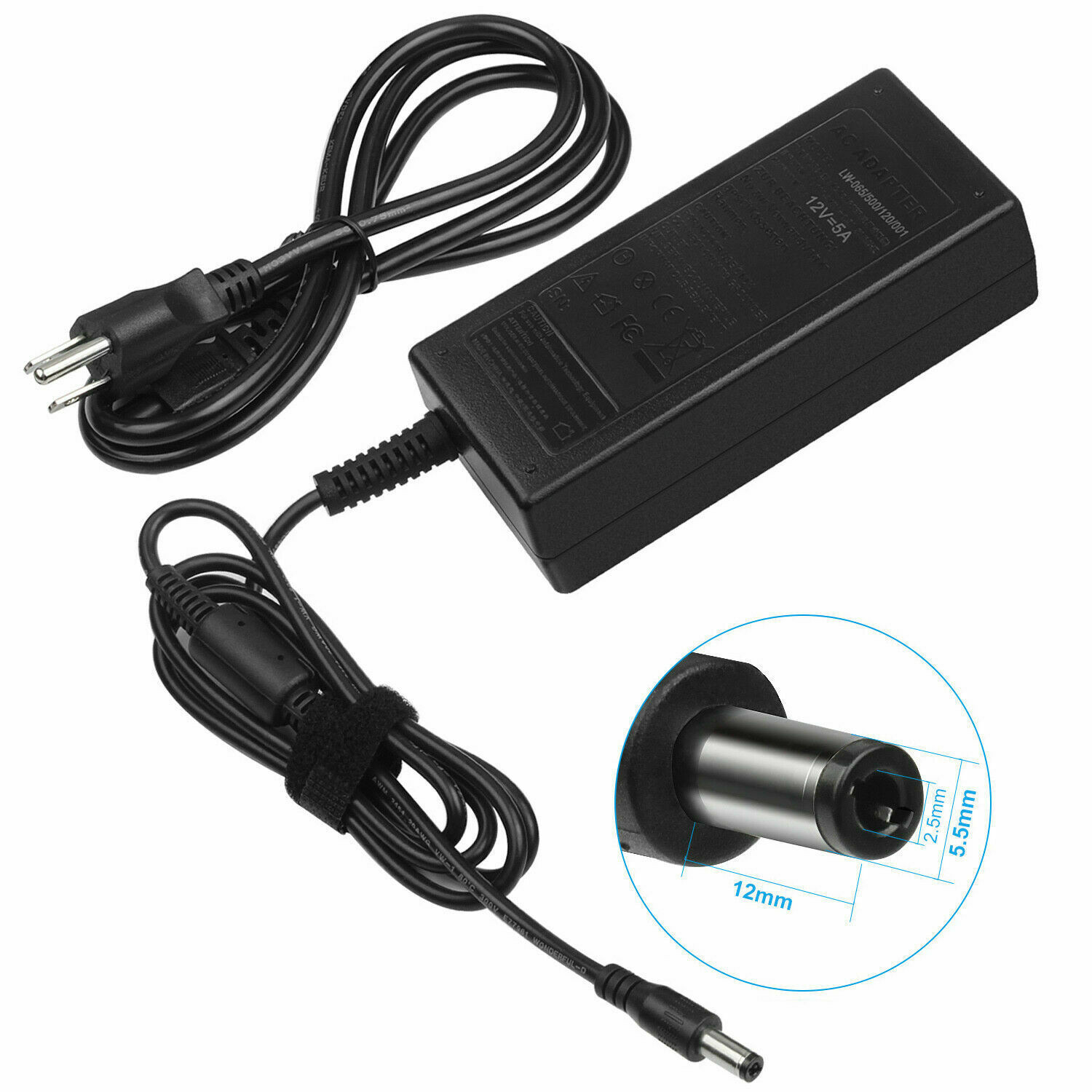 12V DC 5A 5amp 60W POWER ADAPTER CHARGER Transformer for LED Strip, CCTV US cord