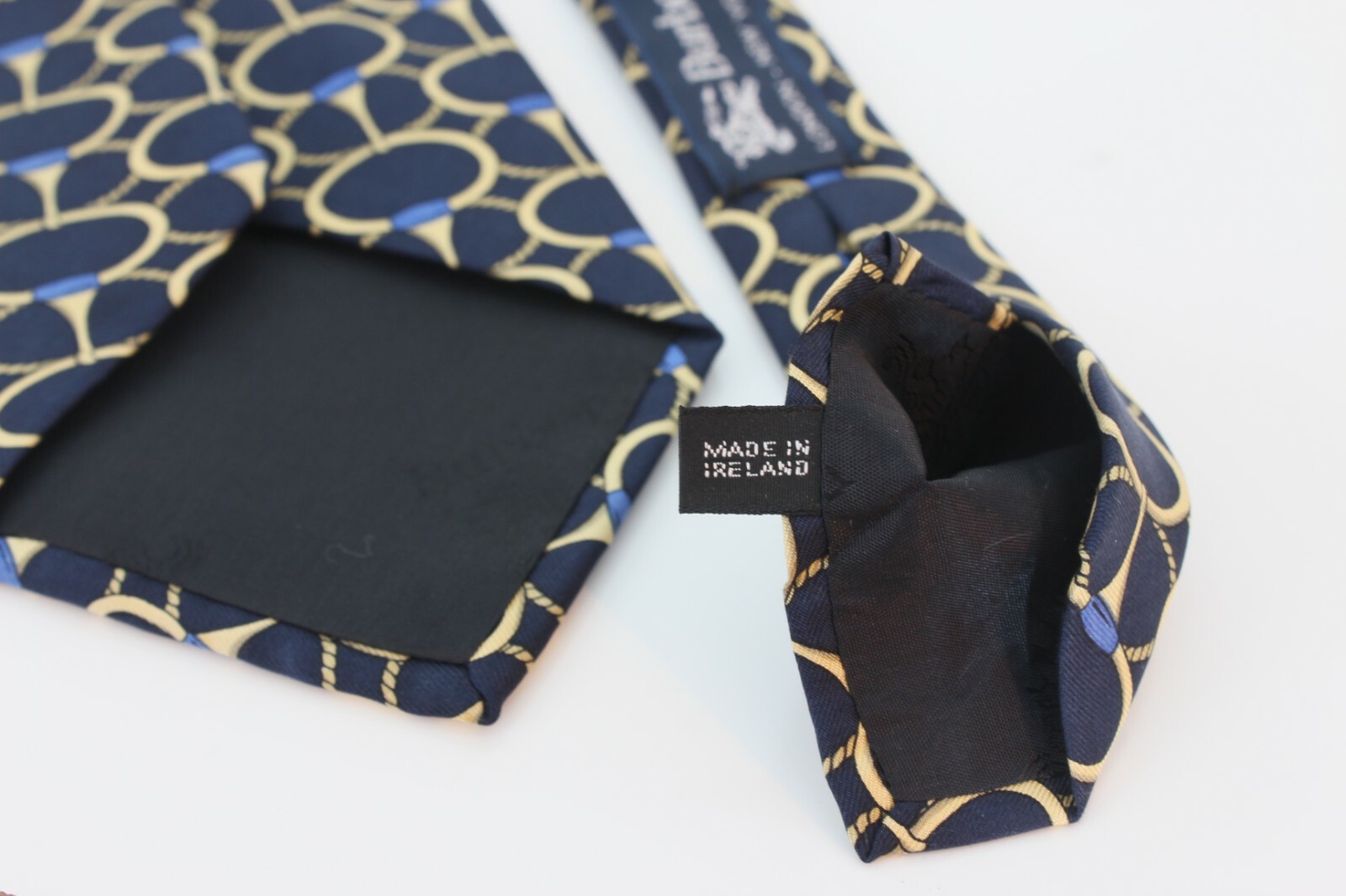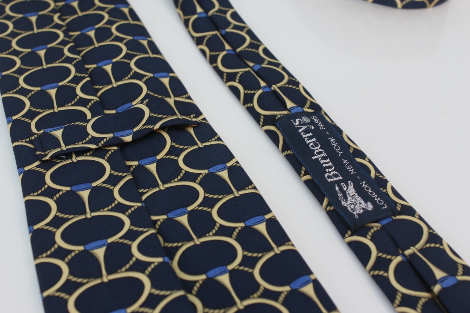 Burberrys' Vintage All Silk Horse-Bit Chain Pattern Navy Blue Tie Made England