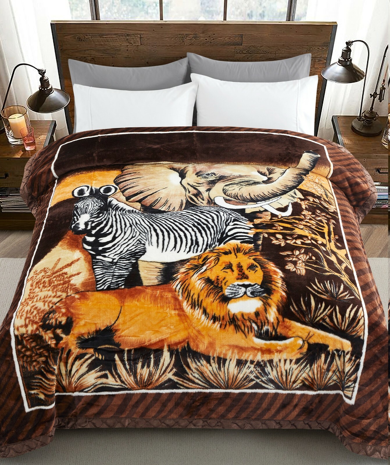 Printed Reversible Oversized Fluffy Soft Warm Mink Animal Blanket, Deer Safari