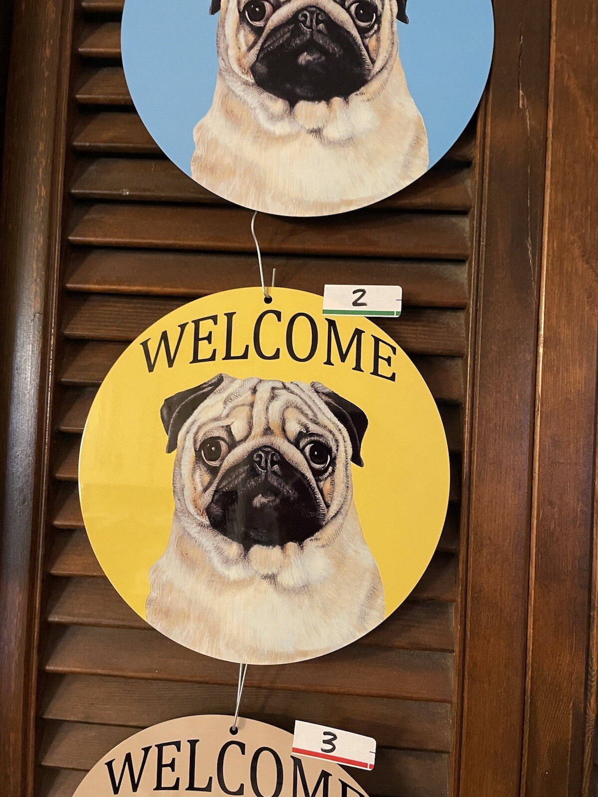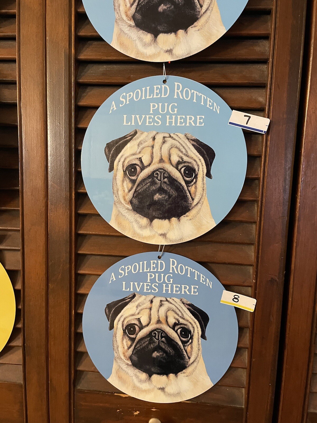 как выглядит KC Creations Metal PUG dog signs XING Spoiled and Welcome ROUND Choice фото