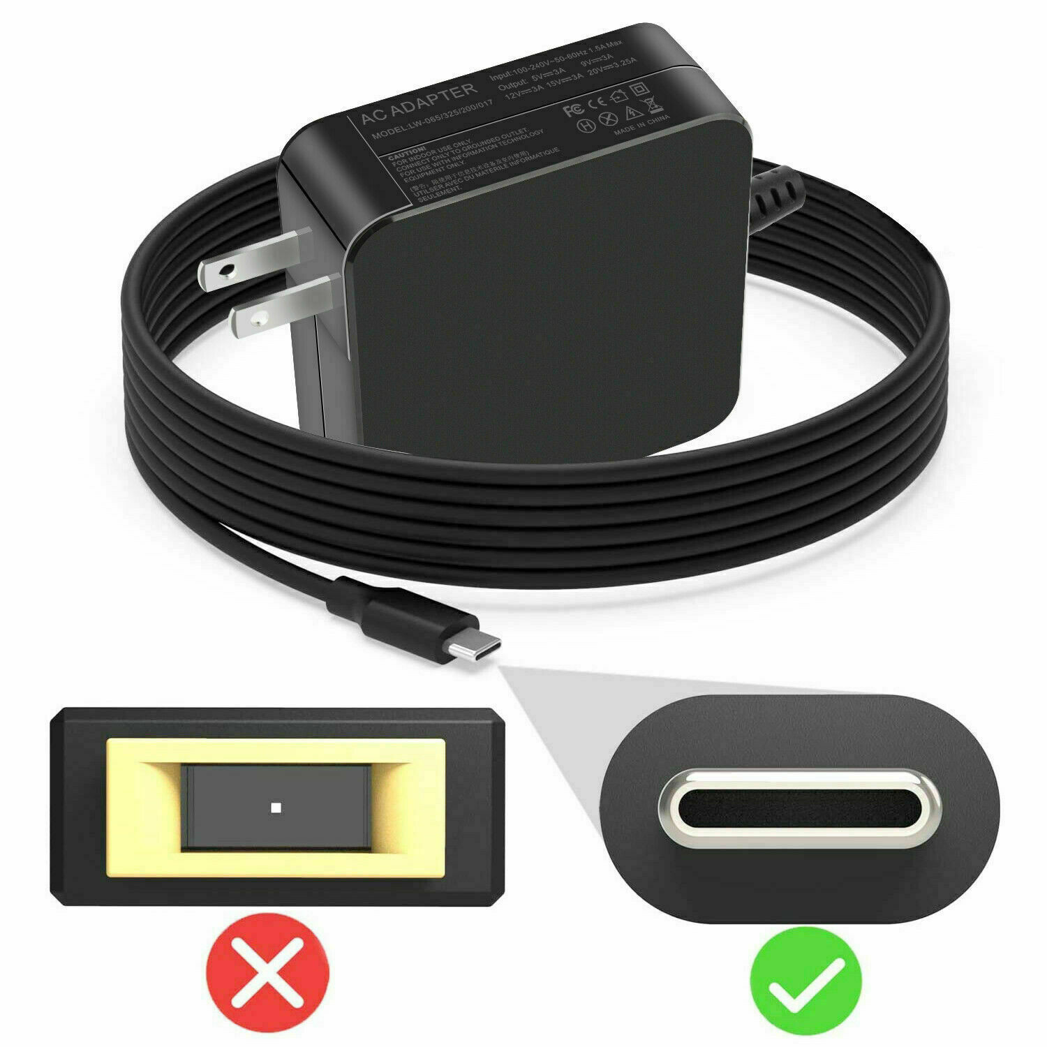 как выглядит 65W USB C Type C for Acer Chromebook Lenovo/HP/Asus/Samsung Power Laptop Charger фото