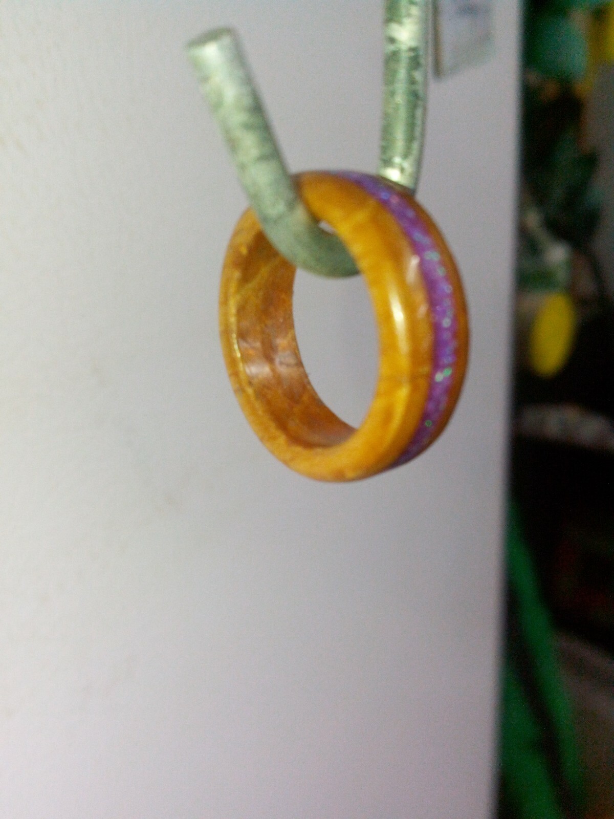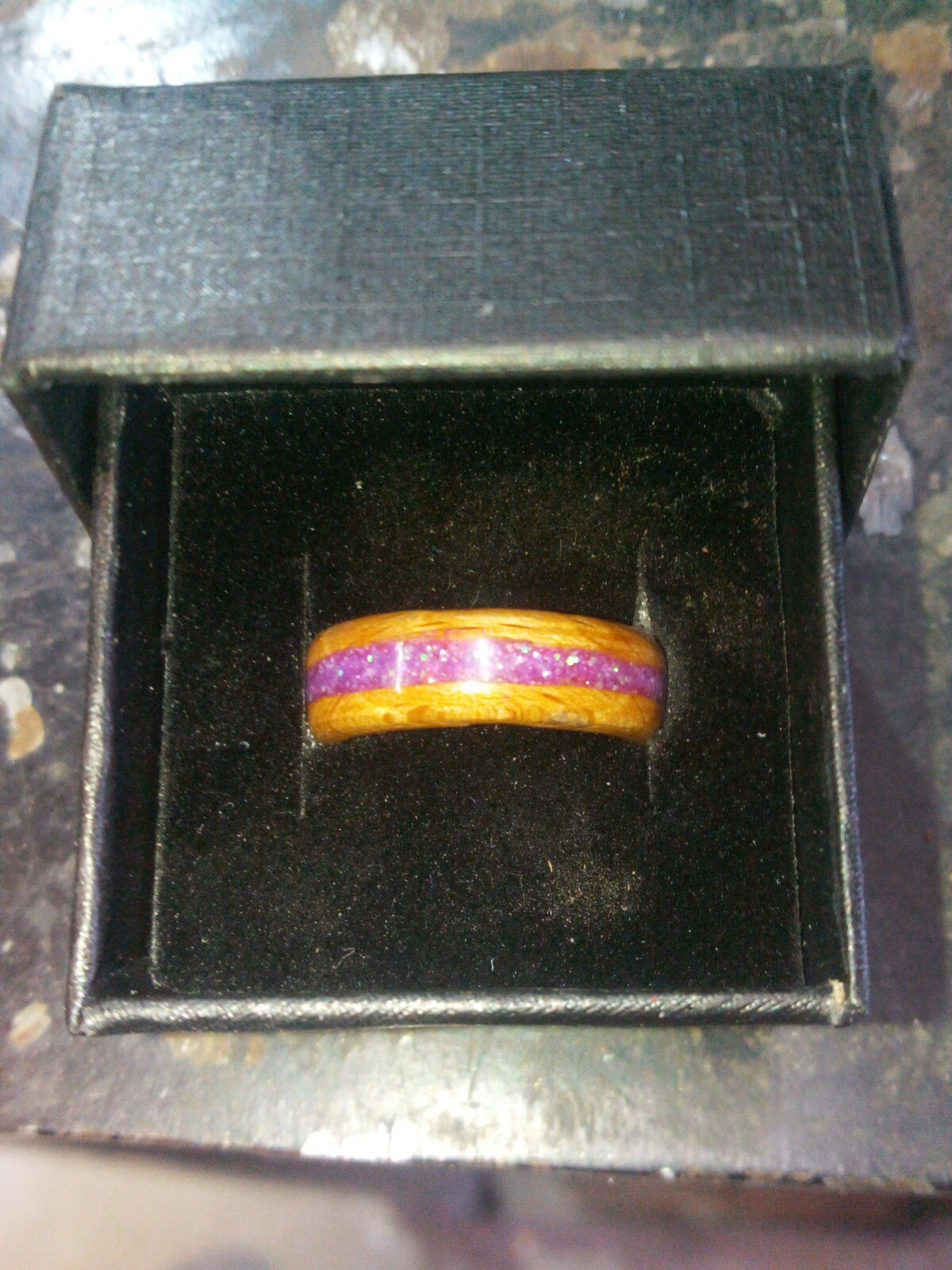 Ring unique Custom Handcrafted Purple Inlay In Oak Wood