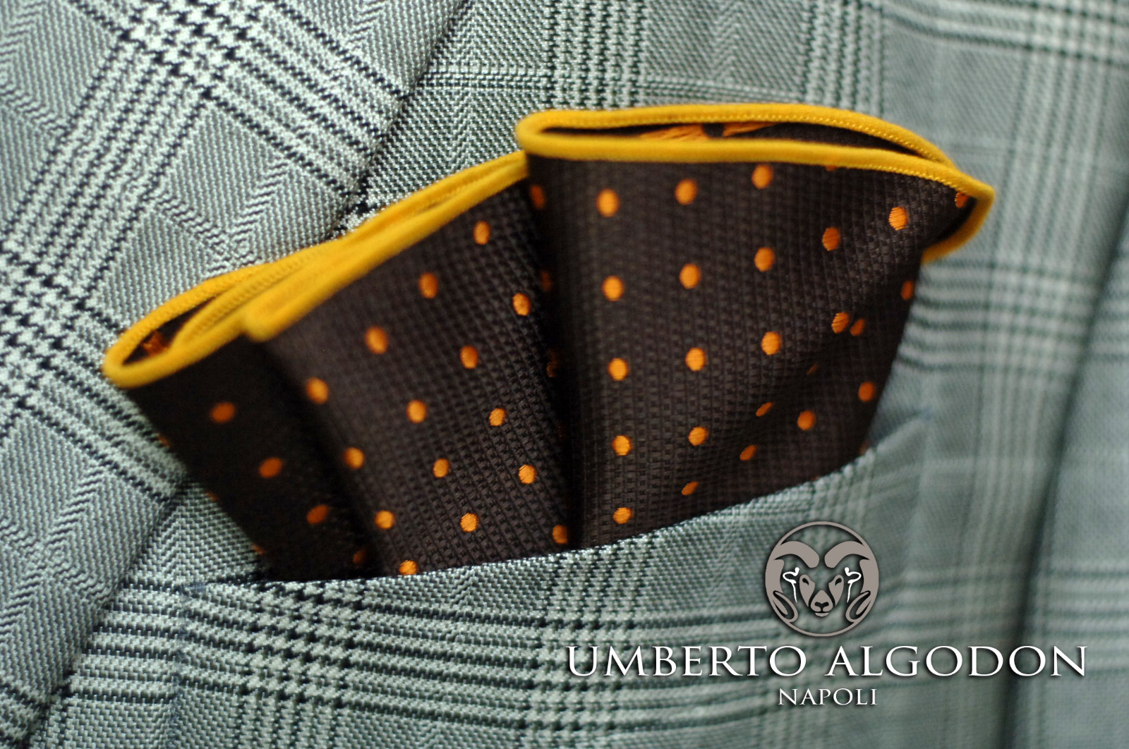 Umberto Algodon Dark Brown Citrus Dot Woven Silk Pocket Round - 75 Retail New